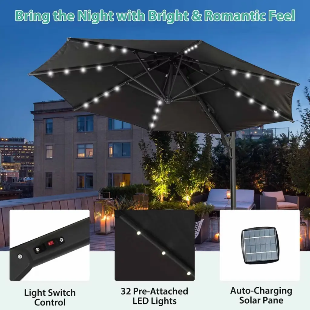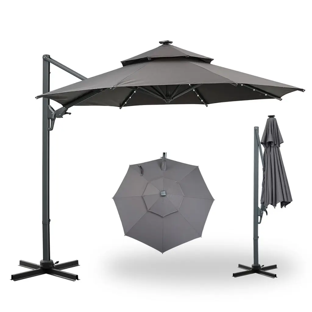 Ainfox 10ft Outdoor Double-layer Market Umbrella Greywith Led Lights