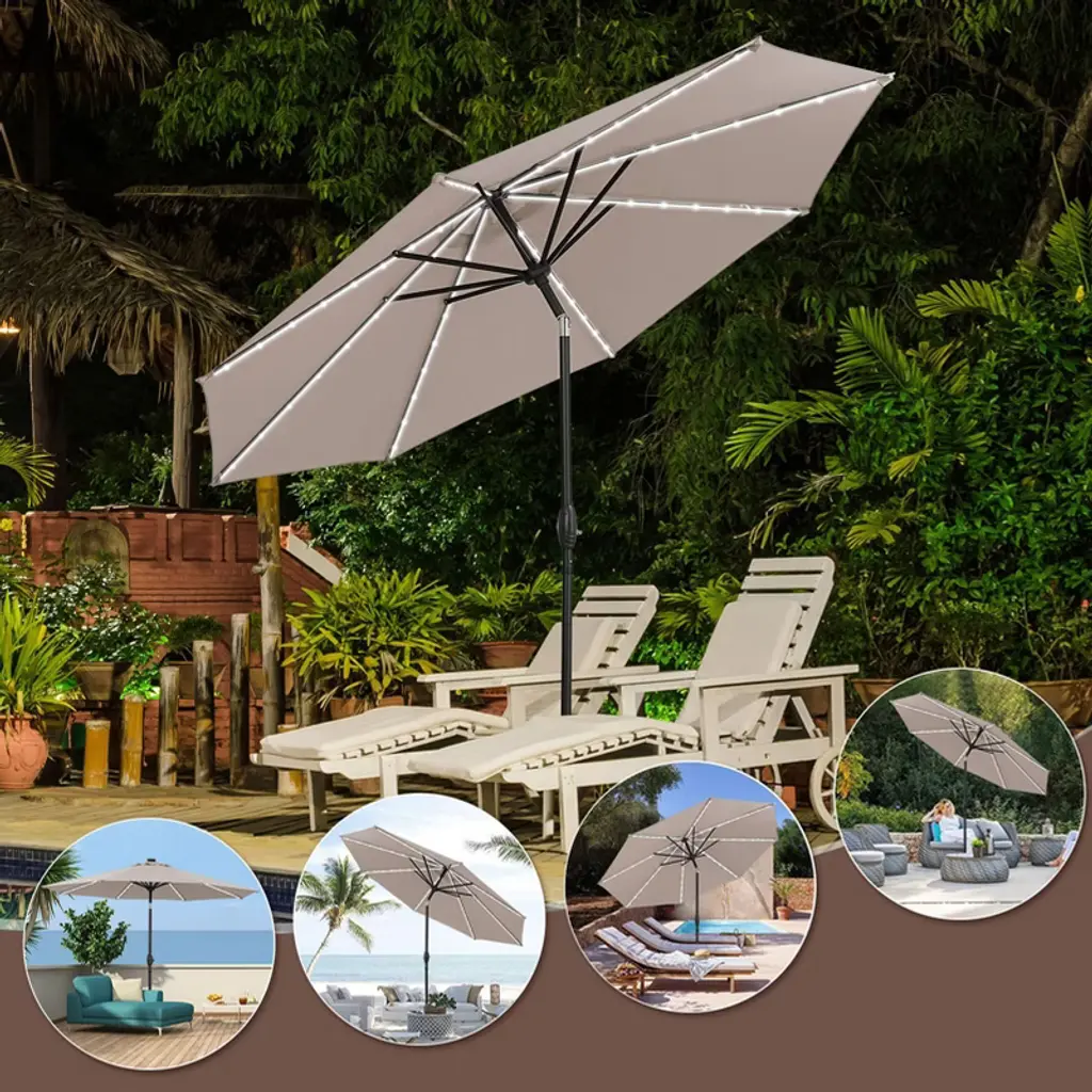 Ainfox 10ft Patio Umbrella Khaki With Led Light Bar For Market,yard,lawn