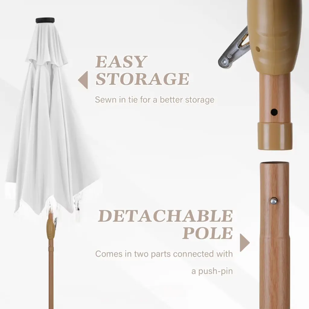 Ainfox 7.5ft Outdoor Tassel Umbrella, Beach Umbrella White