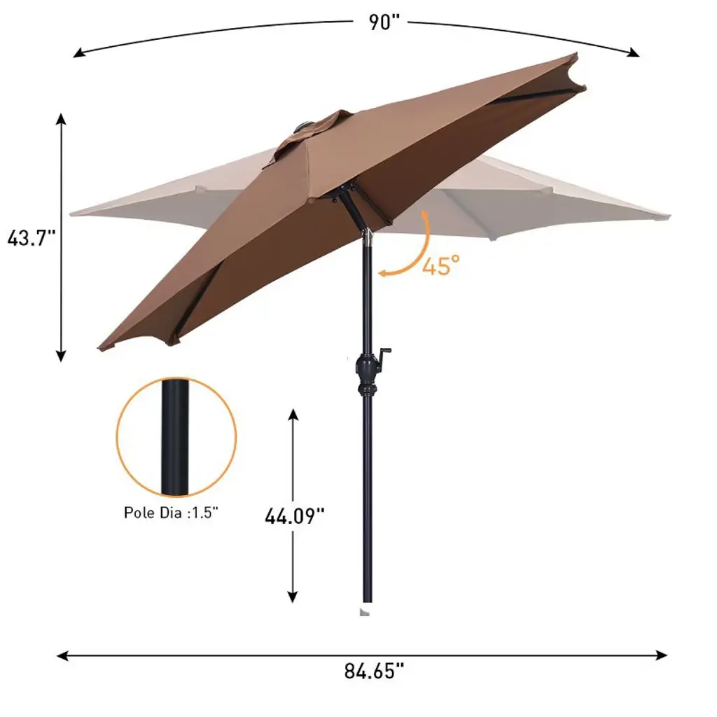 Ainfox 7.5ft Patio Umbrella Coffee Without Lights