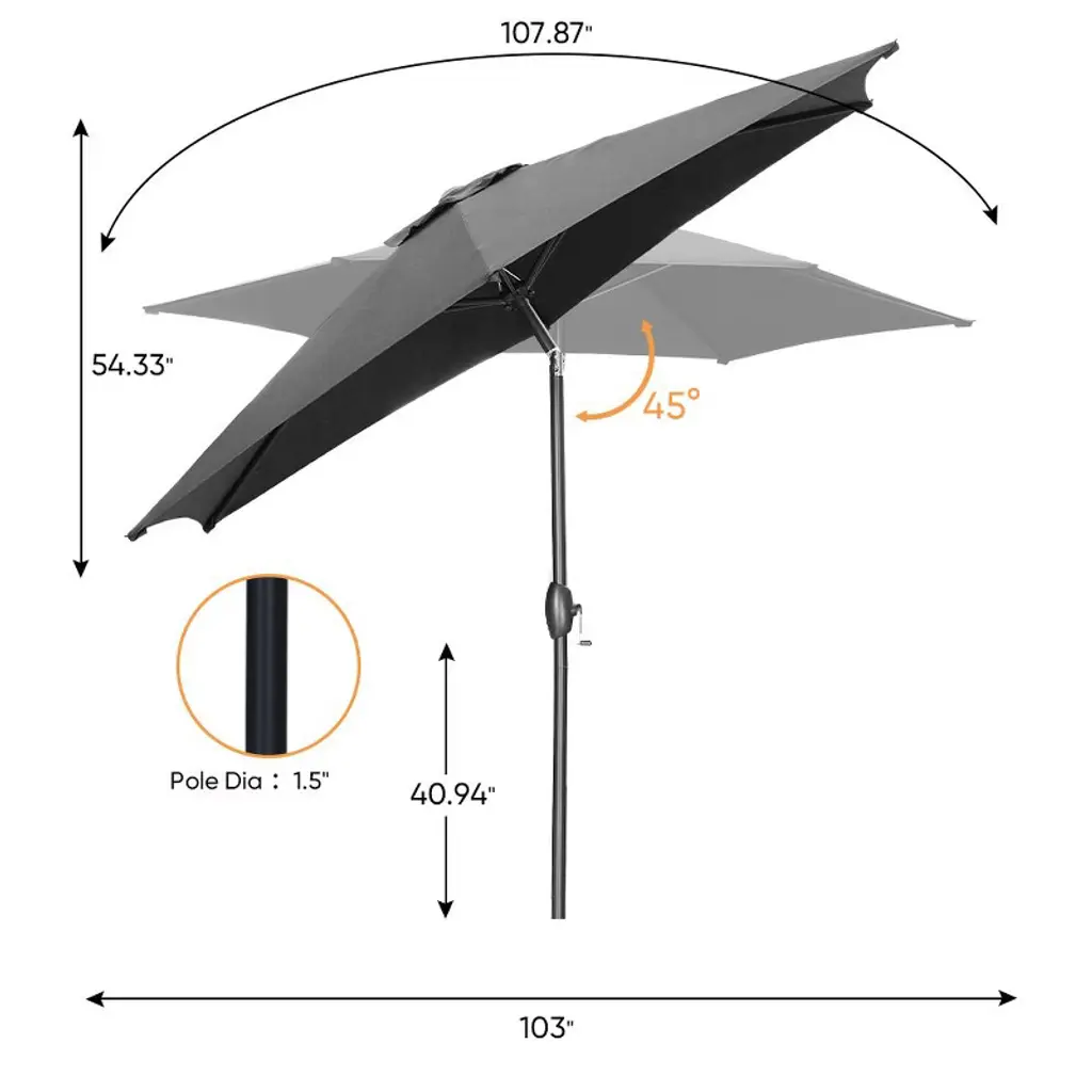 Ainfox 9Ft Patio Umbrella With Push Button Tilt And Crank, Outdoor Umbrella, Pool Umbrella For Market, Terrace, Beach, Outdoor Restaurant
