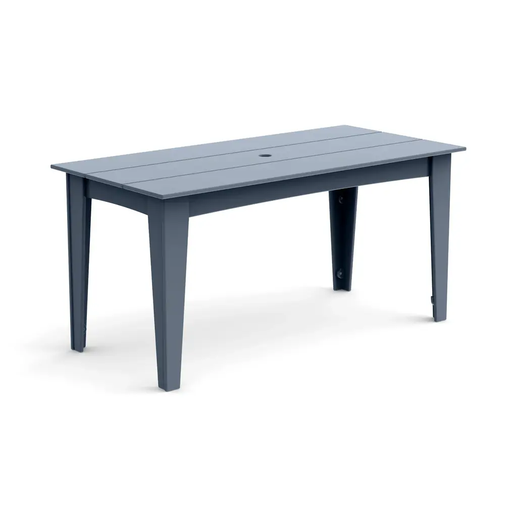The perfect modern outdoor dining table for any setting, the Alfresco Dining Table with Umbrella Hole from Loll Designs is a durable and colorful table ready to stand up to the outdoors. Crafted from recycled plastic, this outdoor dining table cleans up easily and requires virtually no maintenance. Treated with UV-resistant additives to ensure the color remains for years to come, this dining table boasts a classic slatted design ready to suit any patio or back deck dining area.Highlights UV INFORMATION:
