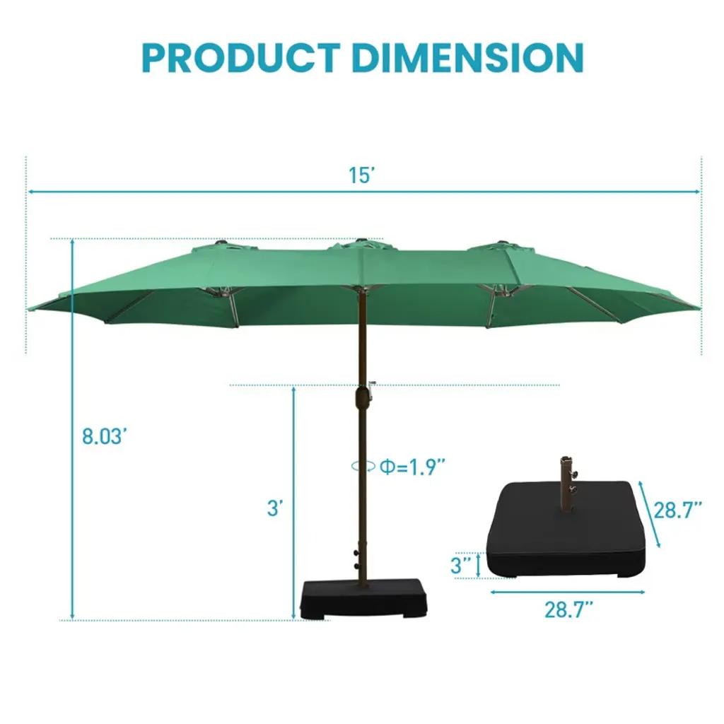 Aoodor 15ft Large Patio Umbrella With Base Stand, Outdoor Double-sided Rectangle Market Umbrella With Crank Handle