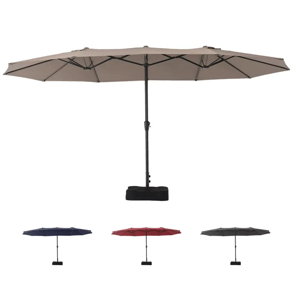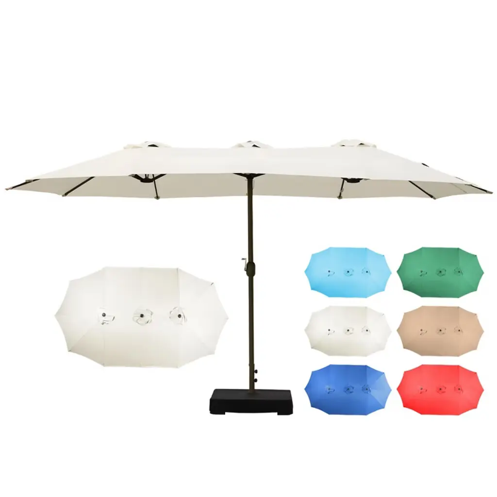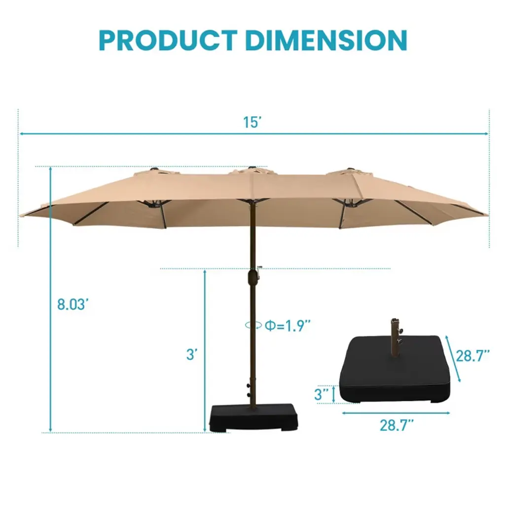 Aoodor 15ft Large Patio Umbrella With Base Stand, Outdoor Double-sided Rectangle Market Umbrella With Crank Handle