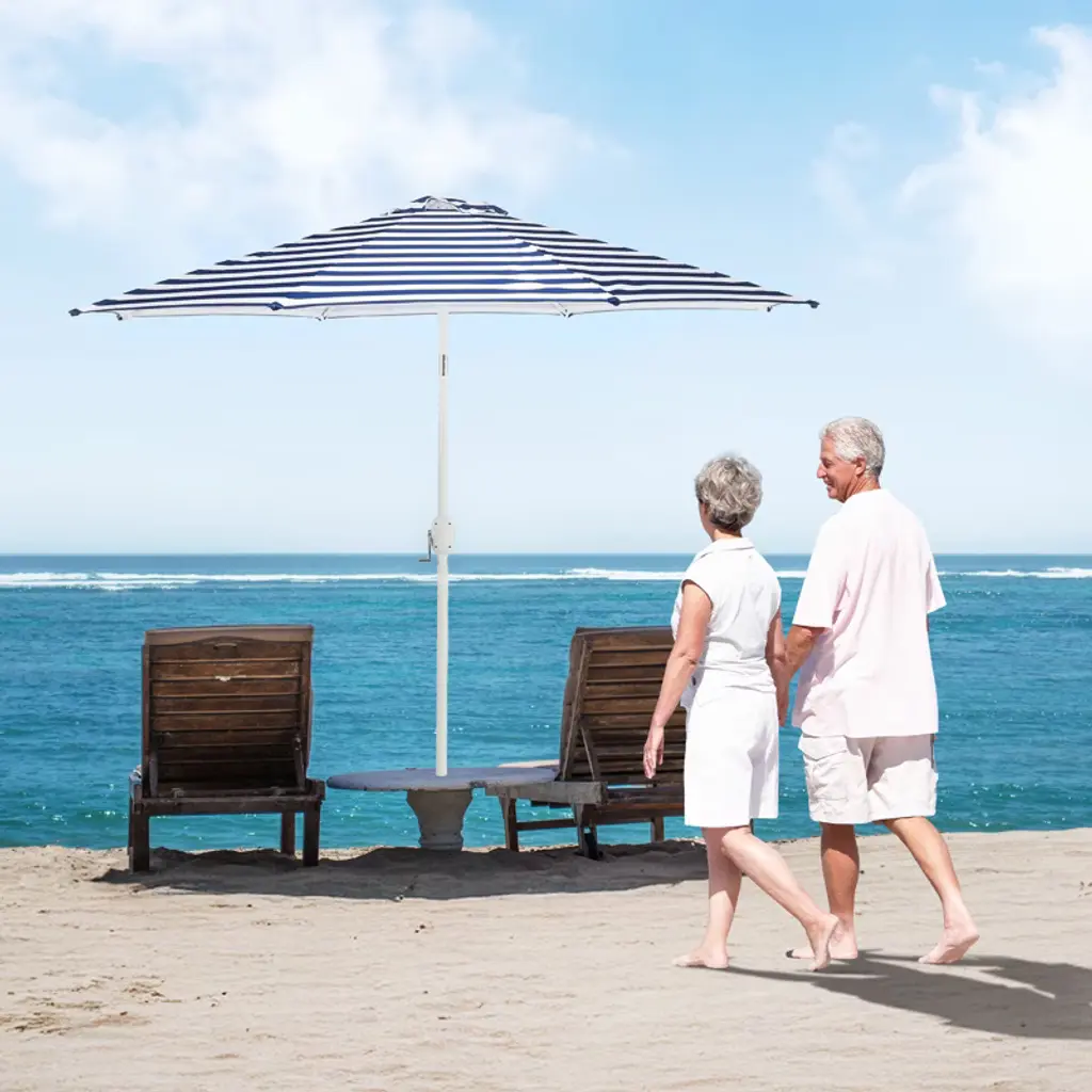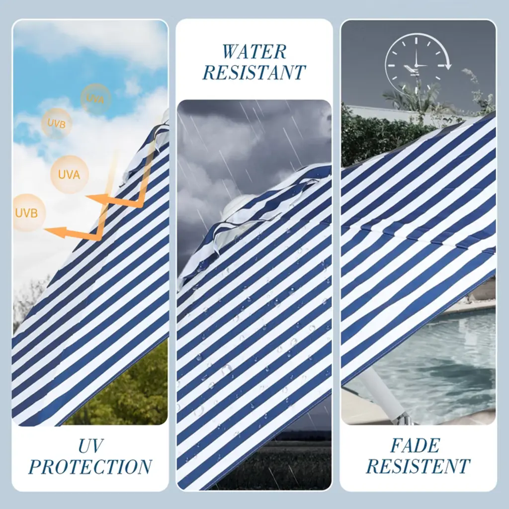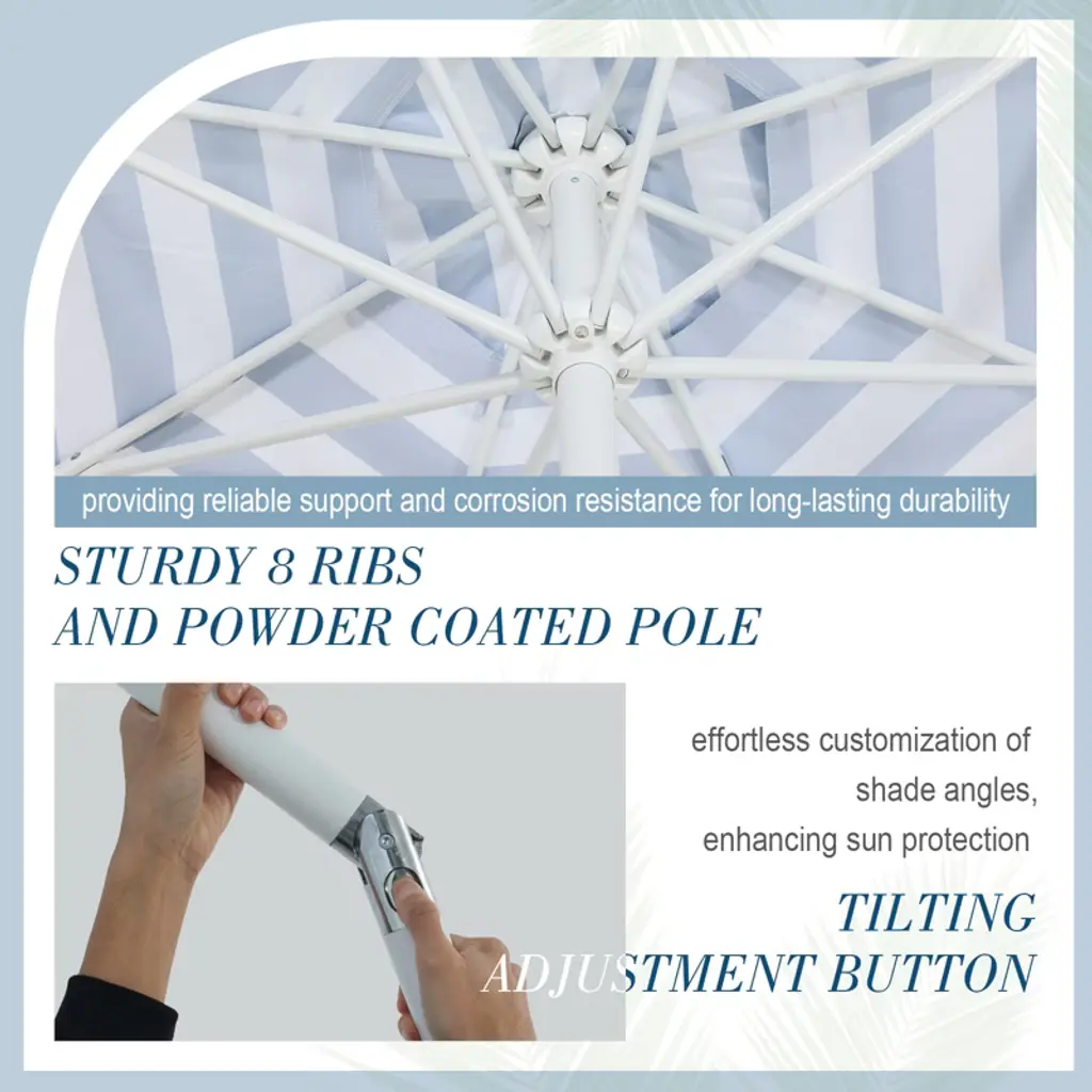Aoodor 9FT Outdoor Patio Market Umbrella Aluminum Frame with Push Button Tilt Crank and 8 Steel Ribs for Garden Deck Backyard and Pool. Elevate your outdoor experience with the Aoodor 9FT Patio Umbrella. Its modern design and versatile use make it perfect for any setting, be it the beach, garden, or patio. Stay cool, dry, and shaded with this UV-protected and Water-Resistant outdoor essential.