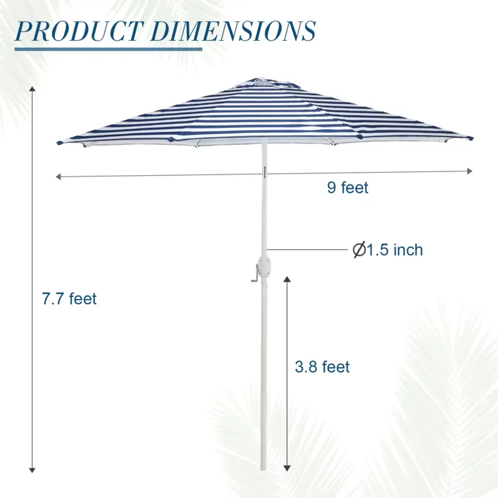 Aoodor 9Ft Outdoor Patio Umbrella, Outdoor Market Table Umbrella With 8 Sturdy Ribs, Push Button Tilt And Crank