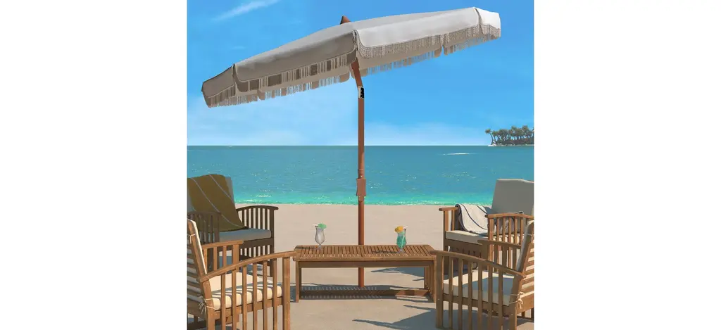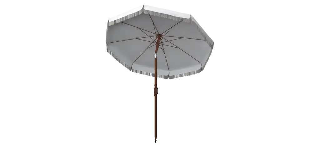 Relax in your own private outdoor oasis beneath the Arcata Umbrella. Arcata's clean white canopy is given a touch of whimsy with its fringe details, while its metal tilt mechanism allows for adjustable shade as the sun crosses the sky from morning to afternoon.