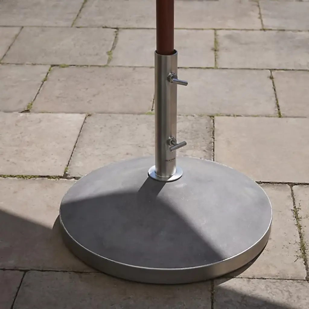 Stay in the shade with the Atlantis Round Umbrella with Stand. This umbrella is made by Fritz Hansen Design, an artisanal team committed to making works that reflect a longstanding Scandinavian craftsmanship. Your umbrella is composed of kapur fabric, which crowns a frame of durable concrete. The fabric is UV-rated and water and dirt-repellent. Atlantis is supported by a circular baseplate of steel. A double pulley system lets you open and close the umbrella with ease.