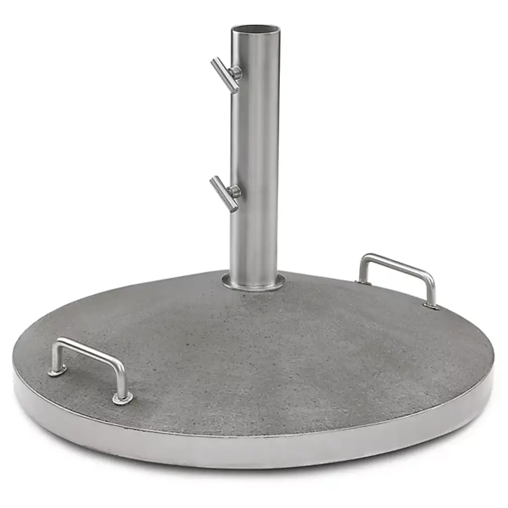 The Atlantis Square Umbrella with Stand from Fritz Hansen embodies excellent Scandinavian craftsmanship. This umbrella is made by Fritz Hansen Design. Your umbrella features a double pulley system that makes opening and closing the umbrella an effortless endeavor. The concrete framework is elegantly crowned by kapur fabric. This UV-rated fabric easily repels dirt and water. A steel base keeps Atlantis well-supported as you enjoy your leisure time. This decorative piece is defined by its streamlined, square shape.