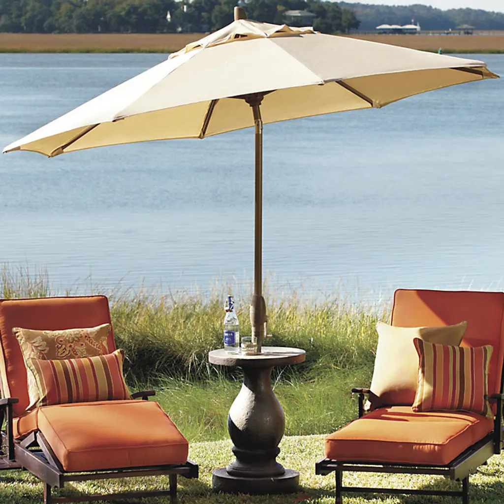Provide custom looks and welcome refuge from the afternoon sun. The classic canopy is made from UV-blocking Sunbrella® fabric that resists fading and mildew and features a single vent to allow breezes to flow through. Constructed of lightweight, yet tough aluminum, the 1.5" pole has high-impact PVC hubs and a durable, scratch-resistant finish. Choose from a variety of fabrics and finishes to complement your outdoor space. Auto Tilt Umbrella features: