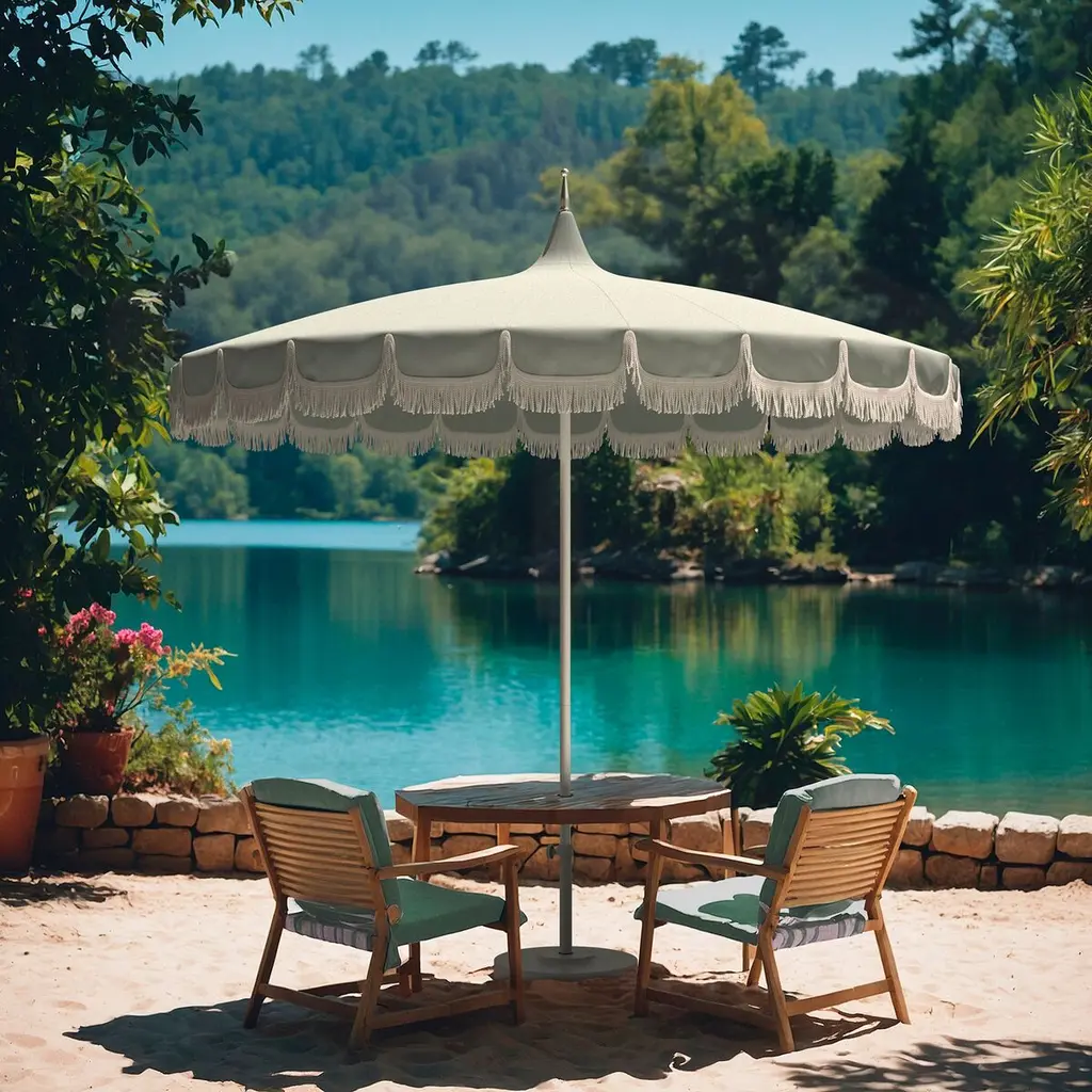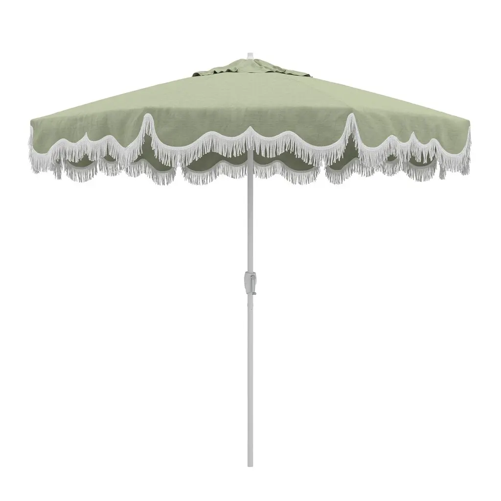 Aya Pagoda Fringe Patio Umbrella, Sunbrella