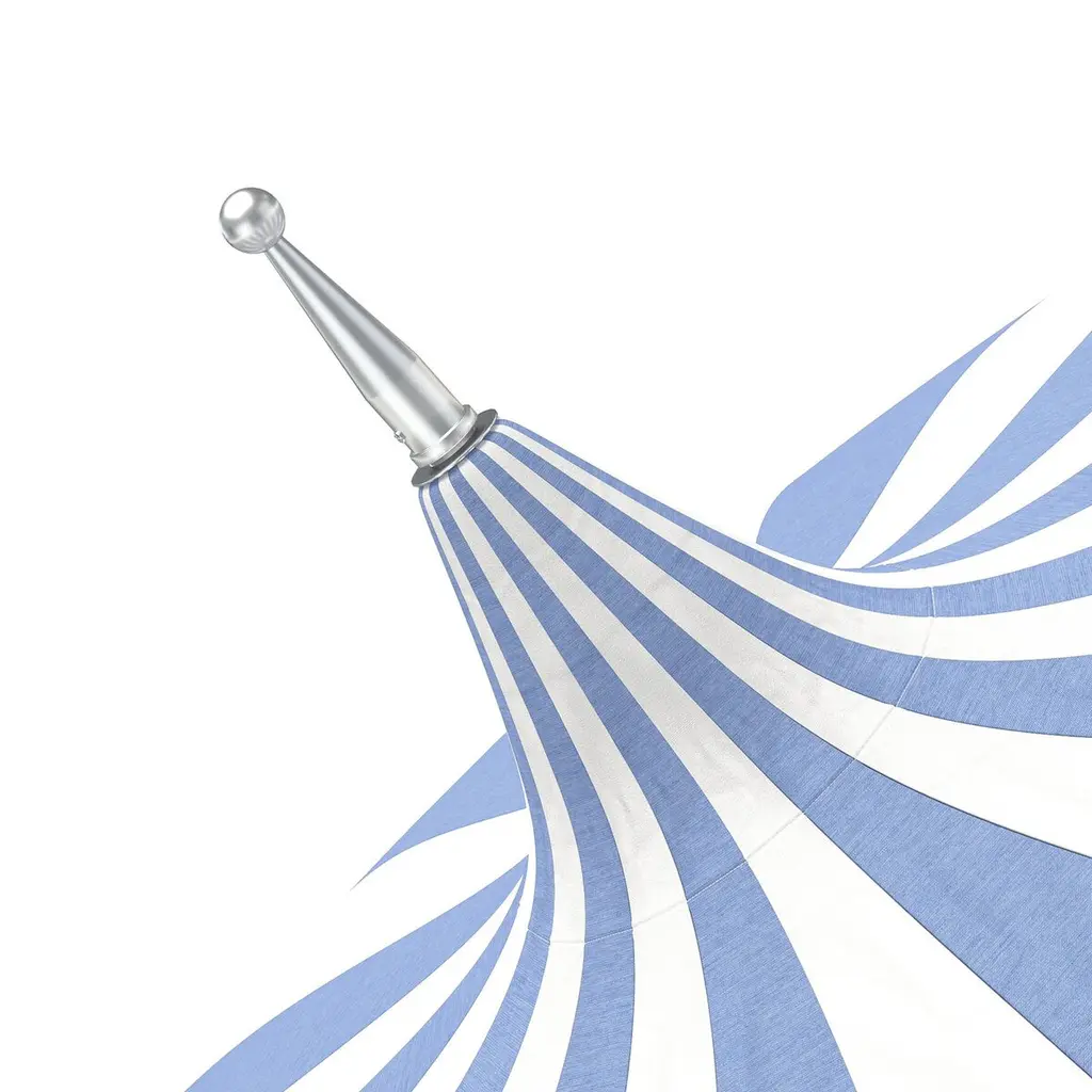 Designed by us and available only at One Kings Lane: Whether you're entertaining or just lounging outdoors, catch some shade in style with this pagoda-style patio umbrella. Its fringed canopy is crafted from durable Sunbrella acrylic to protect against the elements, while its frame is made using a combination of sturdy aluminum and zinc plated steel with a push-open pin stop. An umbrella base is not included but is required for use.