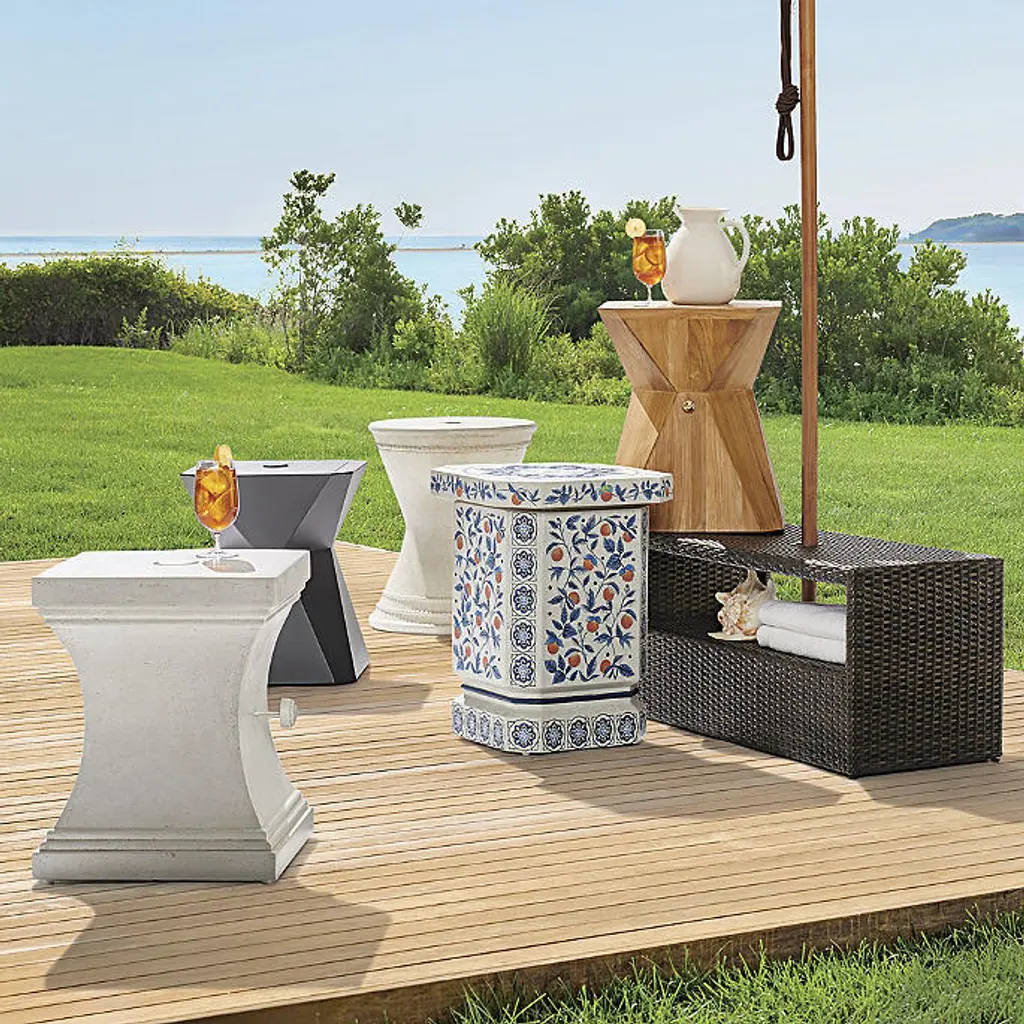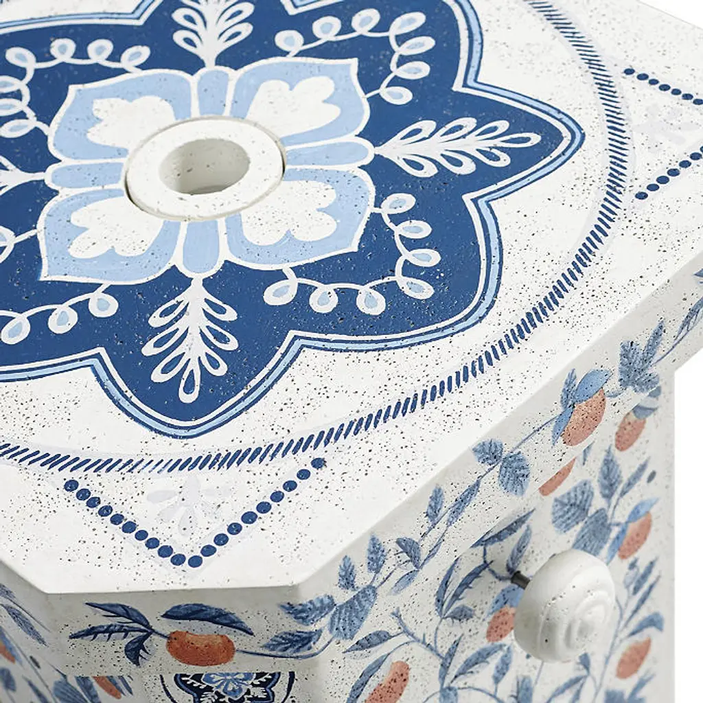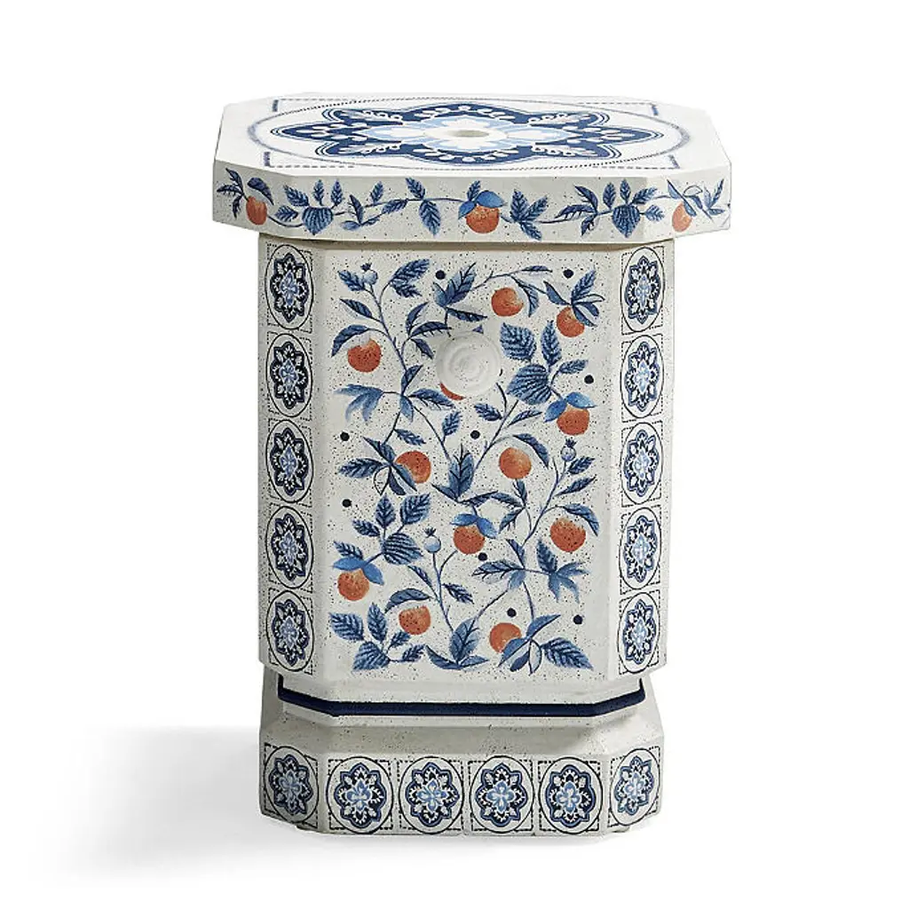 Inspired by the fresh fruit native to Portugal, our Azura Handpainted Umbrella Table combines various motifs to create a stunning focal point for an outdoor seating area. The durable stone composite material is cast by hand then handpainted, with hints of vibrant orange and details like chamfered corners that set it apart. Hand-cast stone composite Handpainted artwork inspired by the fresh fruit native to Portugal Because of the handpainted nature of this item, each is unique and subtle variations may occur Adjustable feet for leveling Accommodates umbrellas up to 9' and poles up to 2" in diameter Fill with 40 lbs. of sand for additional stability (not included) Includes umbrella hole cover Turn handle clockwise to secure pole to base Coordinates with the Azura Handpainted Planter and Azura Handpainted Accent Stool Wipe clean with a damp cloth; do not use abrasive cleaners A Frontgate exclusive. At Frontgate, our primary focus is quality. We guarantee that every product we sell will stand up to the supreme test – our customers' satisfaction. To learn more about our policies, visit our Shipping & Processing, Returns & Exchanges and Warranty & Price Guarantee pages. Inspired by the fresh fruit native to Portugal, our Azura Handpainted Umbrella Table combines various motifs to create a stunning focal point for an outdoor seating area. The durable stone composite material is cast by hand then handpainted, with hints of vibrant orange and details like chamfered corners that set it apart. Hand-cast stone composite Handpainted artwork inspired by the fresh fruit native to Portugal Because of the handpainted nature of this item, each is unique and subtle variations may occur Adjustable feet for leveling Accommodates umbrellas up to 9' and poles up to 2" in diameter Fill with 40 lbs. of sand for additional stability (not included) Includes umbrella hole cover Turn handle clockwise to secure pole to base Coordinates with the Azura Handpainted Planter and Azura Handpainted Accent Stool Wipe clean with a damp cloth; do not use abrasive cleaners A Frontgate exclusive. At Frontgate, our primary focus is quality. We guarantee that every product we sell will stand up to the supreme test – our customers' satisfaction. To learn more about our policies, visit our Shipping & Processing, Returns & Exchanges and Warranty & Price Guarantee pages.