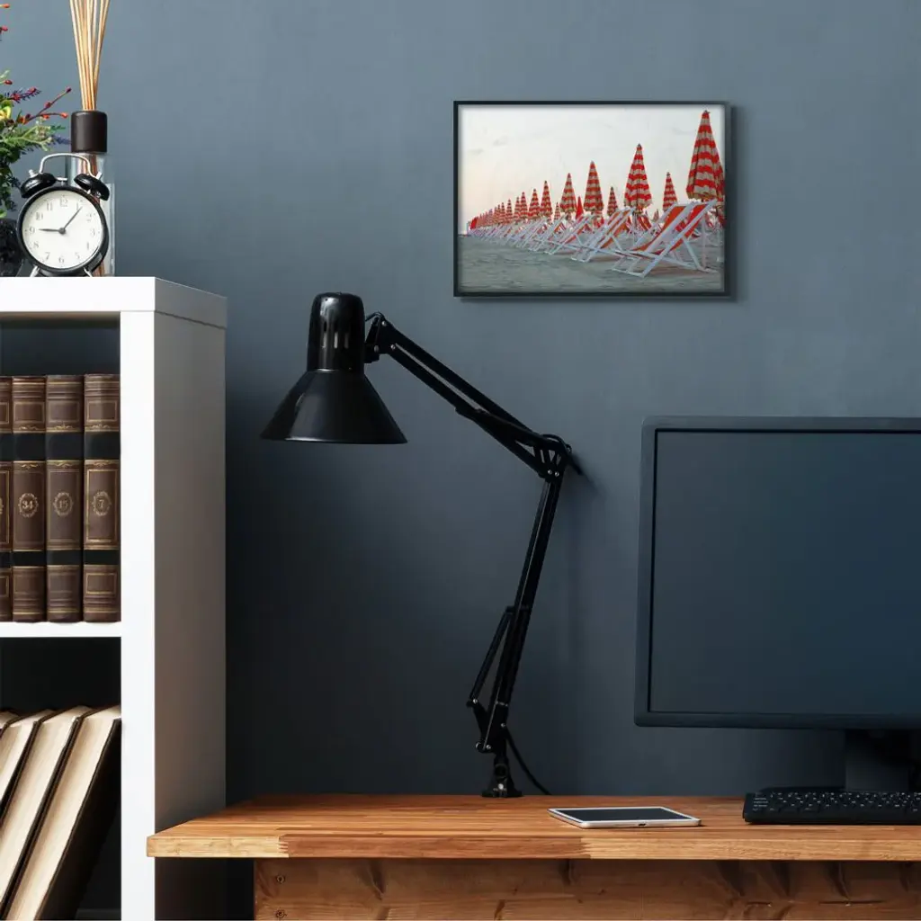 Beach Chair Row With Umbrellas Red Tan Photograph,1pc, Each 11 X 14