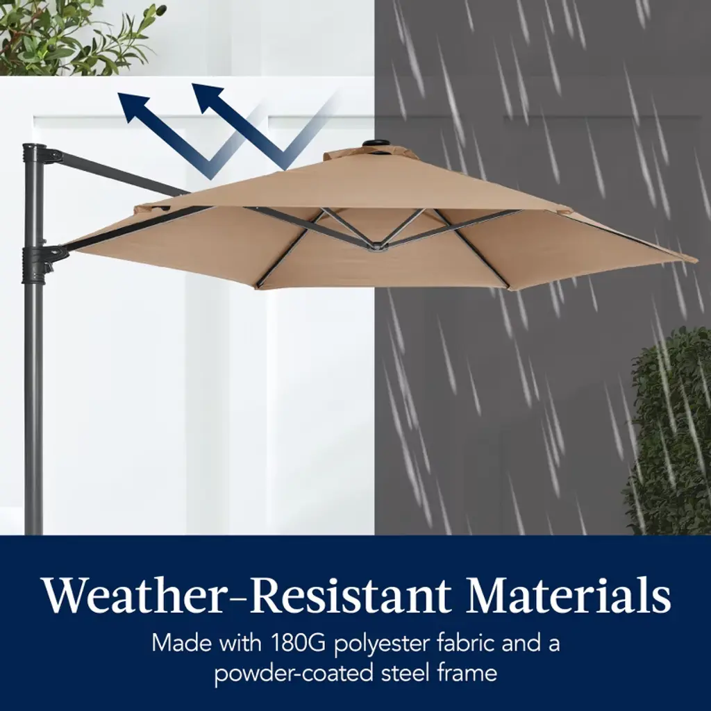 Best Choice Products 10ft 360 Rotating Cantilever Offset Hanging Market Patio Umbrella W/ Solar Lights - Tan