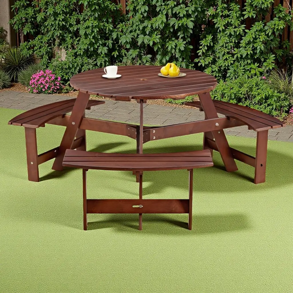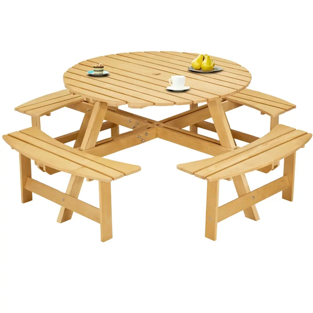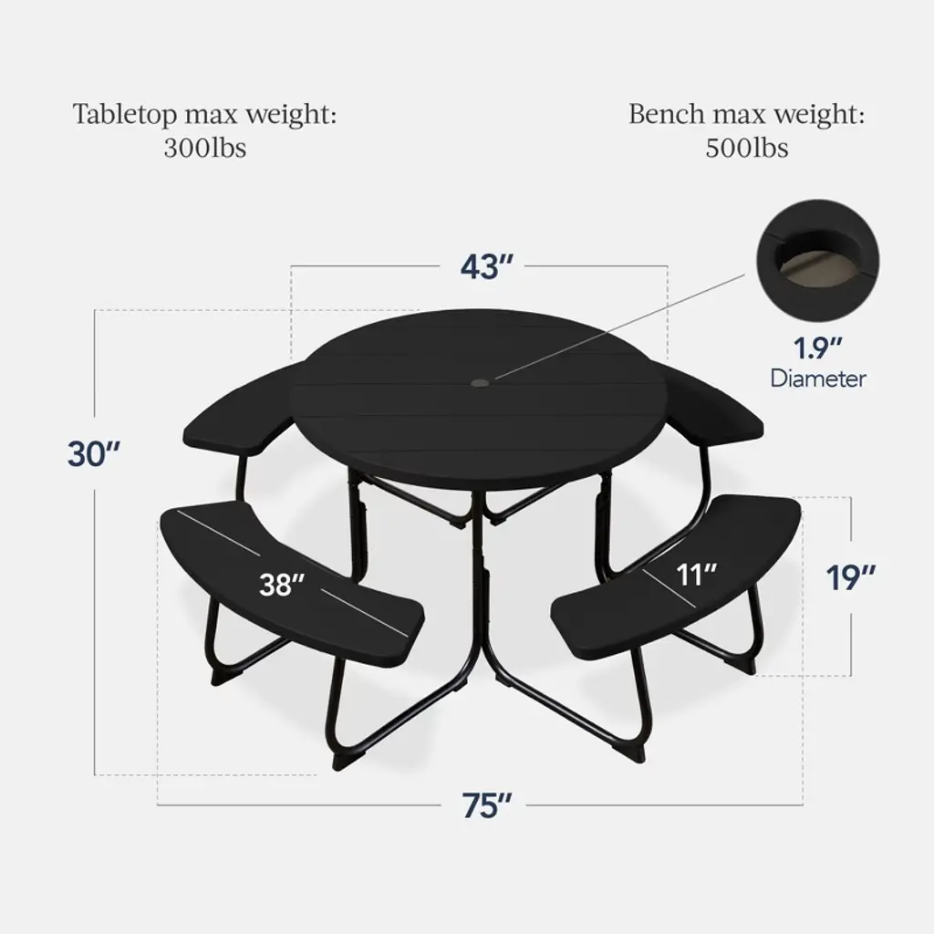 Best Choice Products 8-person Circular Outdoor Picnic Table W/ 4 Benches, Umbrella Hole, 2000lb Capacity - Black