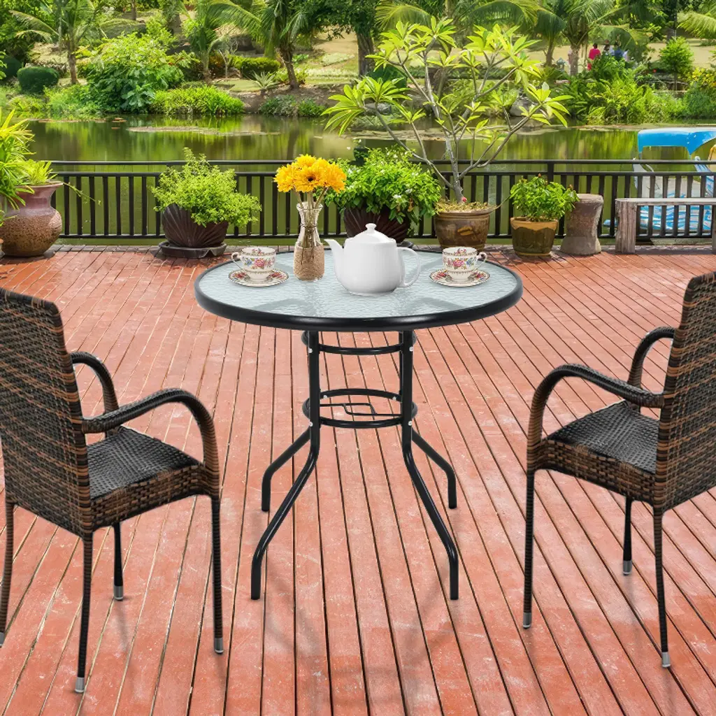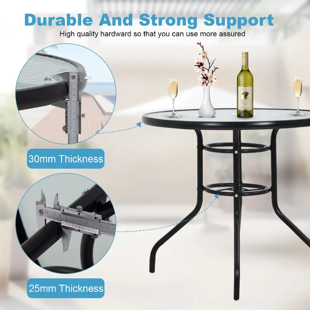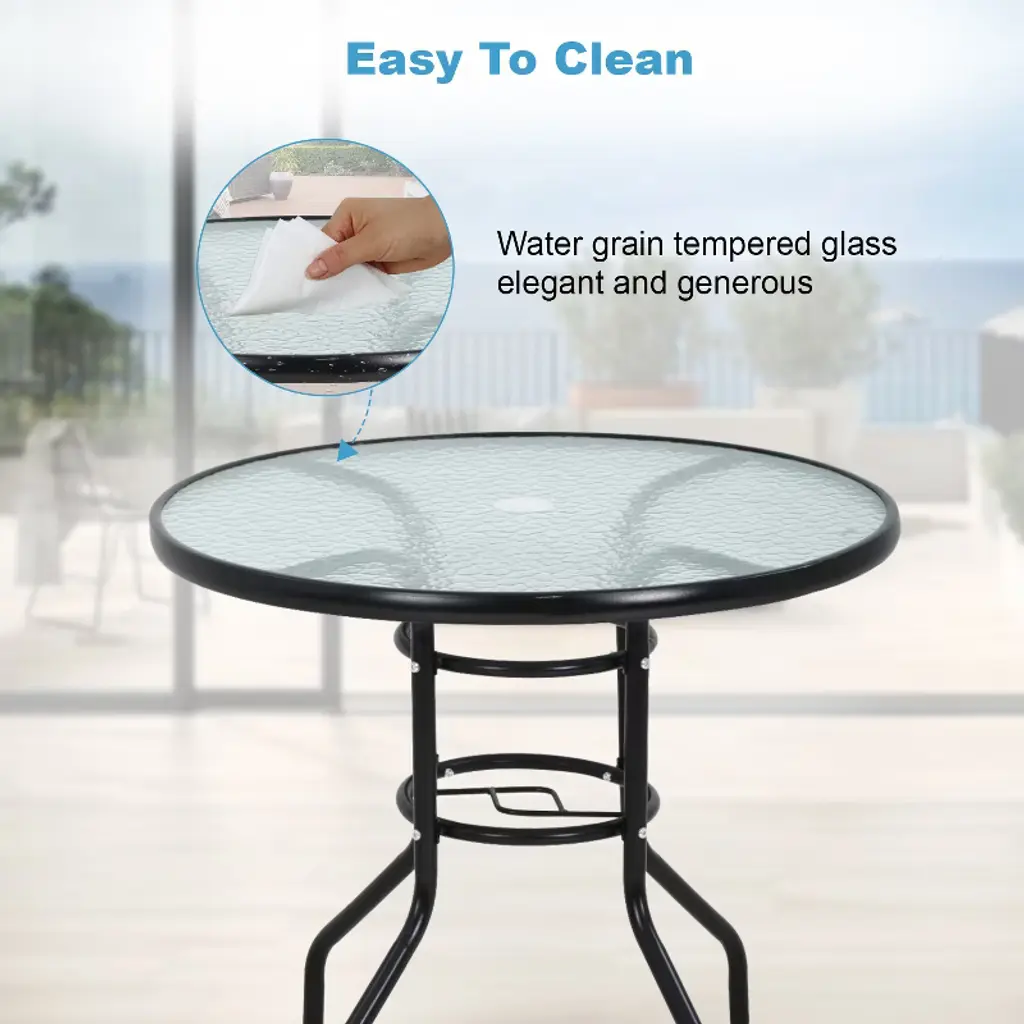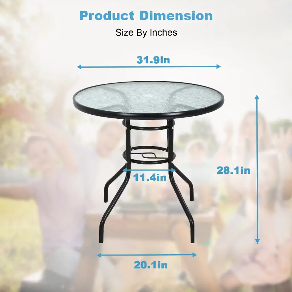 Bestmassage Outdoor Table Patio Table Tempered Glass Tabletop With Umbrella Hole, Round