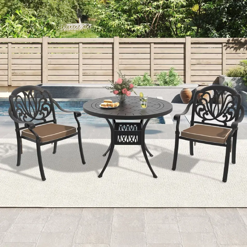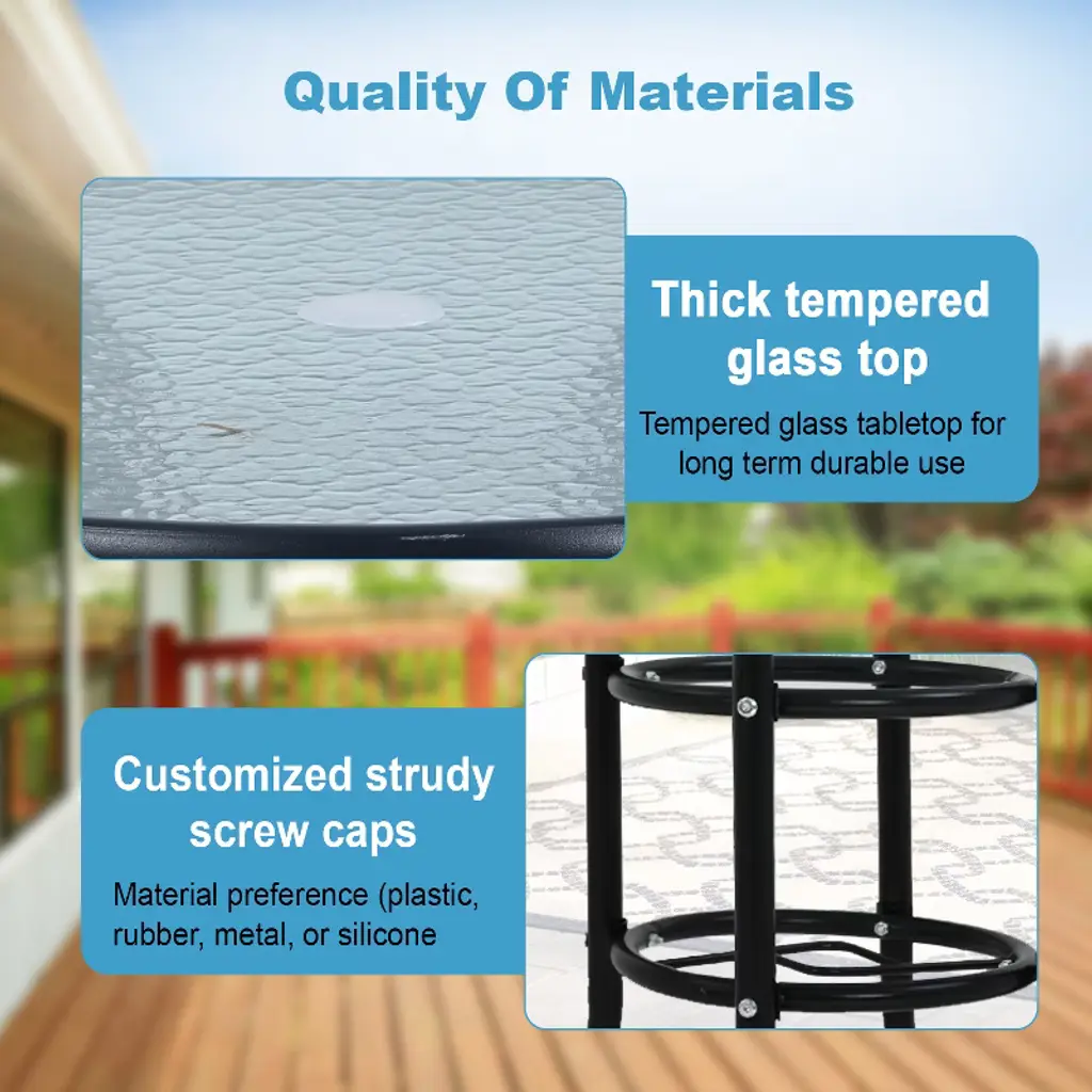 BestMassage Outdoor Table is a chic and adaptable table that looks great on any patio or deck. The table's sturdy tempered glass is supported by a rust-resistant powder-coated steel frame. Along with an umbrella hole to keep you cool on bright days, the table also has a double steel ring for increased stability. For busy families, the table is an excellent option because it is simple to assemble and clean.
