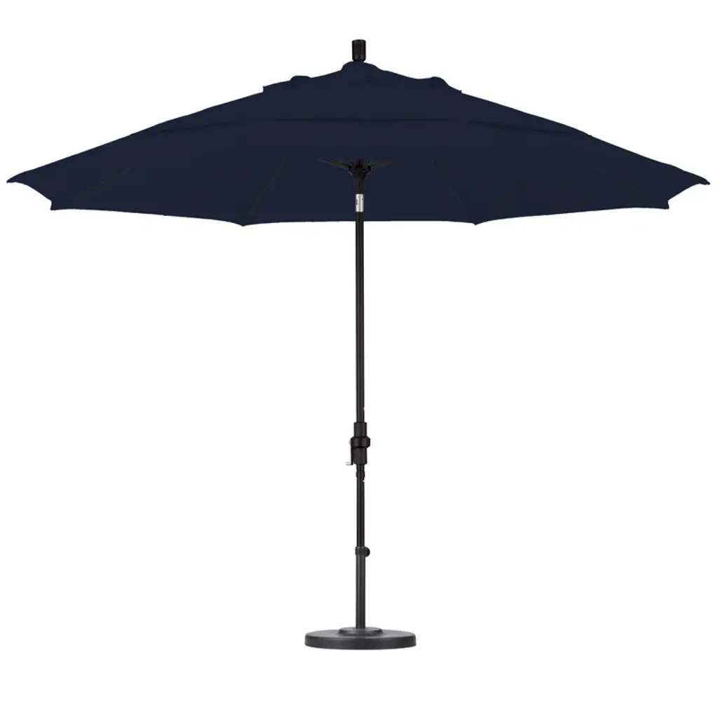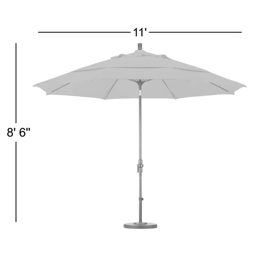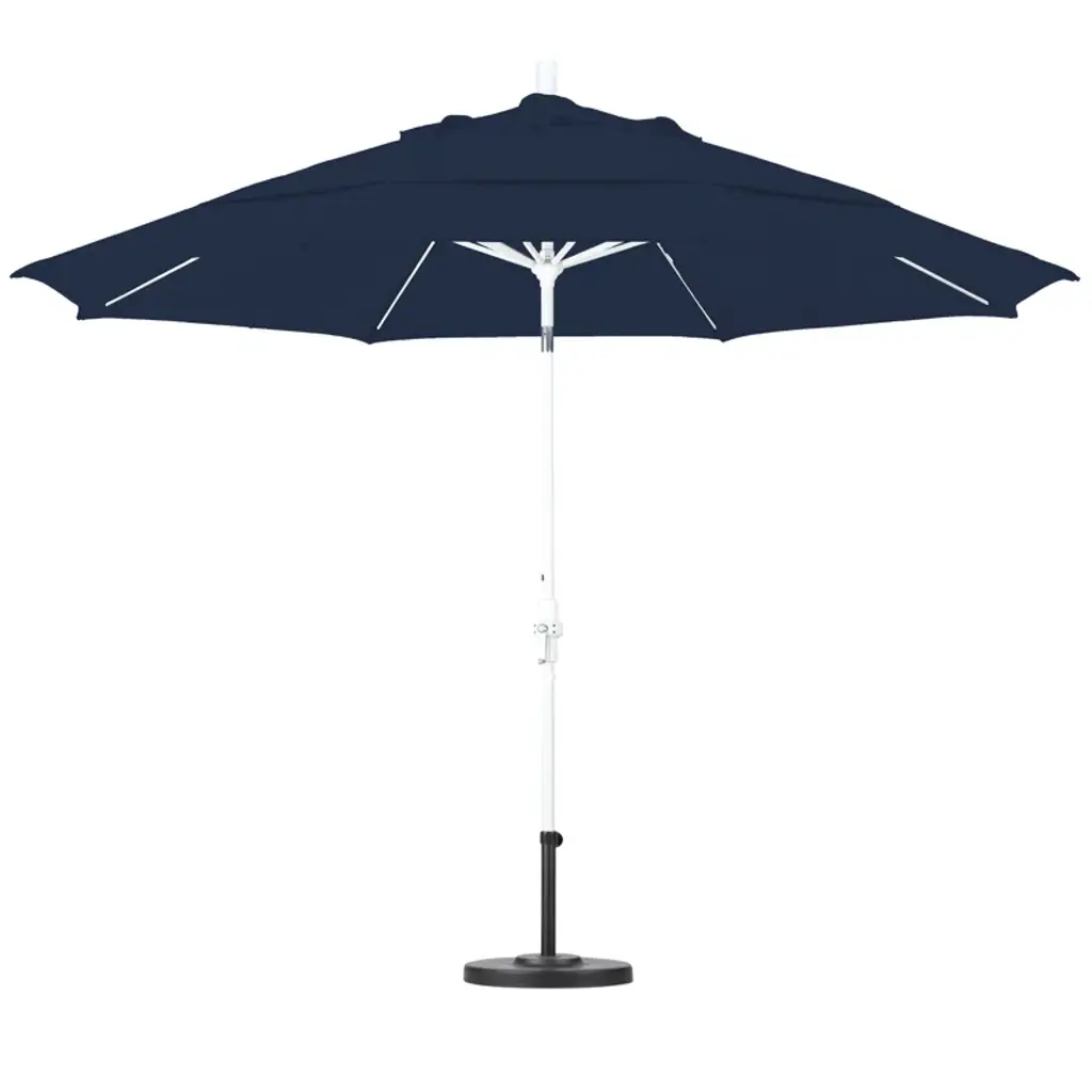 Embrace the sun safely with this extra-large, 11-foot umbrella! Crafted from durable solution-dyed acrylic, it boasts a striped canopy that's both water and fade-resistant. The sturdy aluminum pole and premium fiberglass rib system ensure stability, even under breezy conditions. Its user-friendly crank lift and advanced collar tilt design mean you can effortlessly adjust the shade as the sun moves. Plus, its mold and mildew resistance ensure long-lasting enjoyment. An umbrella stand sold separately. Don't forget, this piece arrives fully assembled, so you can start enjoying your new shade right away.