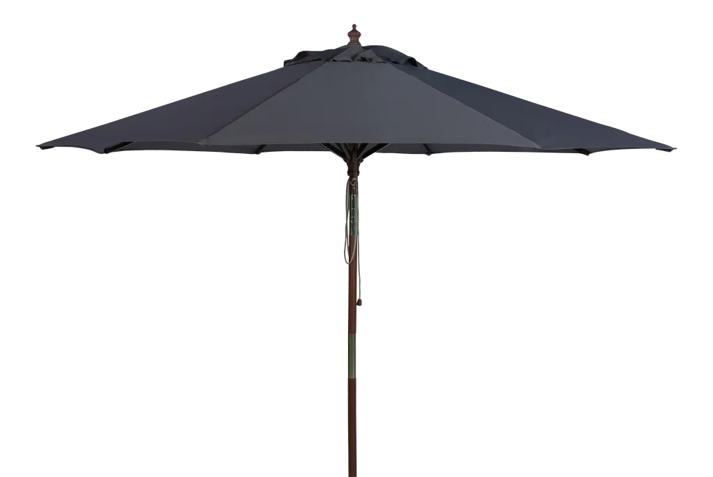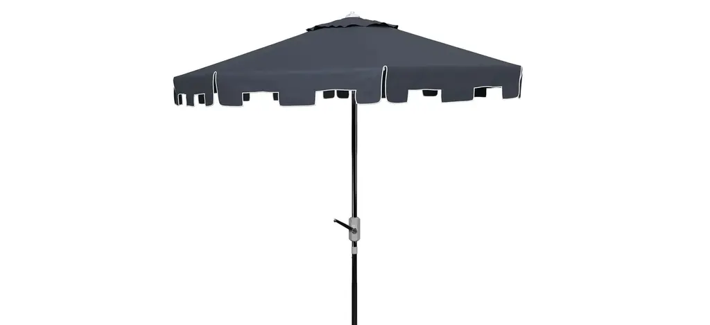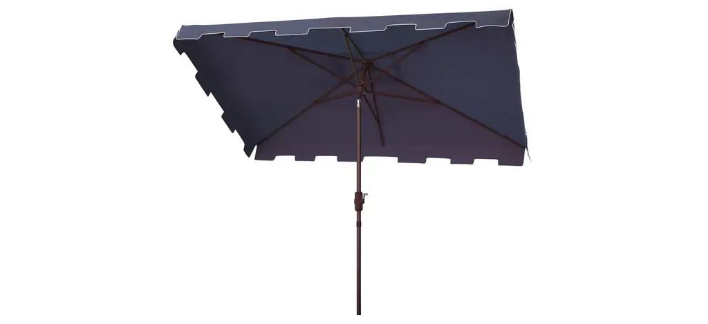 A classic market umbrella gets a stylish makeover in coastal cool navy and white for chic European flair. Its rectangular polyester canopy and brown aluminum post make it ideal for the veranda or pool deck. Includes easy crank and tilt mechanism.