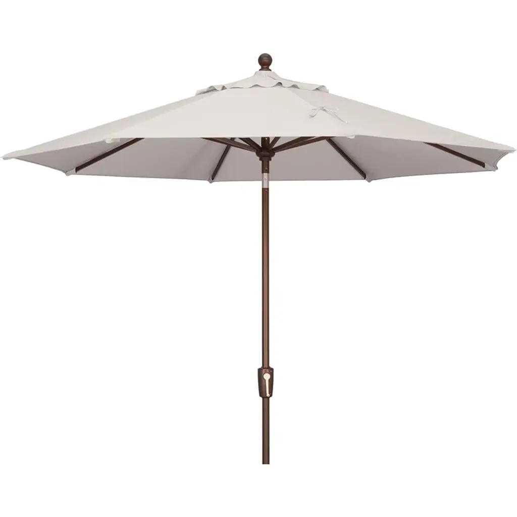 Host fun-filled parties on your patio or deck with this 11' outdoor umbrella. Made with a powder-coated aluminum frame and pole, it features eight slim ribs that form an octagonal shape. Its Sunbrella acrylic fabric comes in several neutral hues to choose from to match your outdoor vibe. Plus, it repels UV rays, and it resists weather, water, and mildew, so it holds up to outdoor use. An easy-to-use crank lift lets you open and close it, while a push-button tilting function keeps you shaded even as the sun sets. Complete this umbrella with a compatible stand (sold separately).