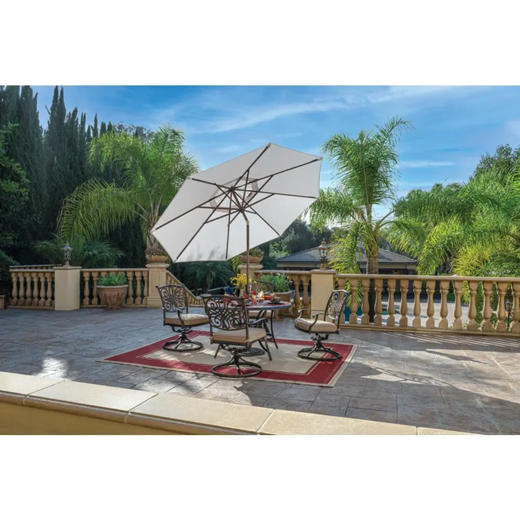 Host fun-filled parties on your patio or deck with this 11' outdoor umbrella. Made with a powder-coated aluminum frame and pole, it features eight slim ribs that form an octagonal shape. Its Sunbrella acrylic fabric comes in several neutral hues to choose from to match your outdoor vibe. Plus, it repels UV rays, and it resists weather, water, and mildew, so it holds up to outdoor use. An easy-to-use crank lift lets you open and close it, while a push-button tilting function keeps you shaded even as the sun sets. Complete this umbrella with a compatible stand (sold separately).