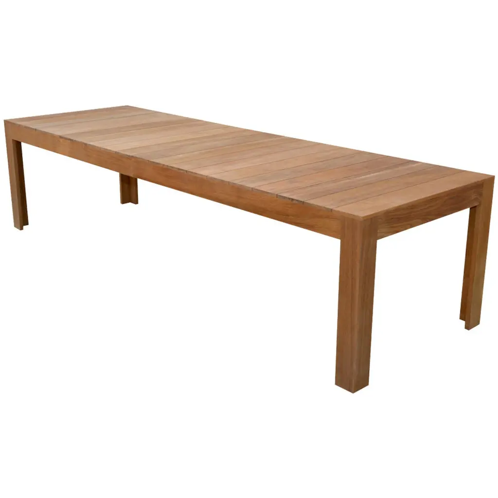 Bring modern style outdoors with our Capri table. This outdoor dining table is made from solid teak heartwood for easy outdoor durability and natural beauty. Capri features wide boards in a slatted design on the top so water can drain, plus an umbrella hole with a matching teak cover piece.
