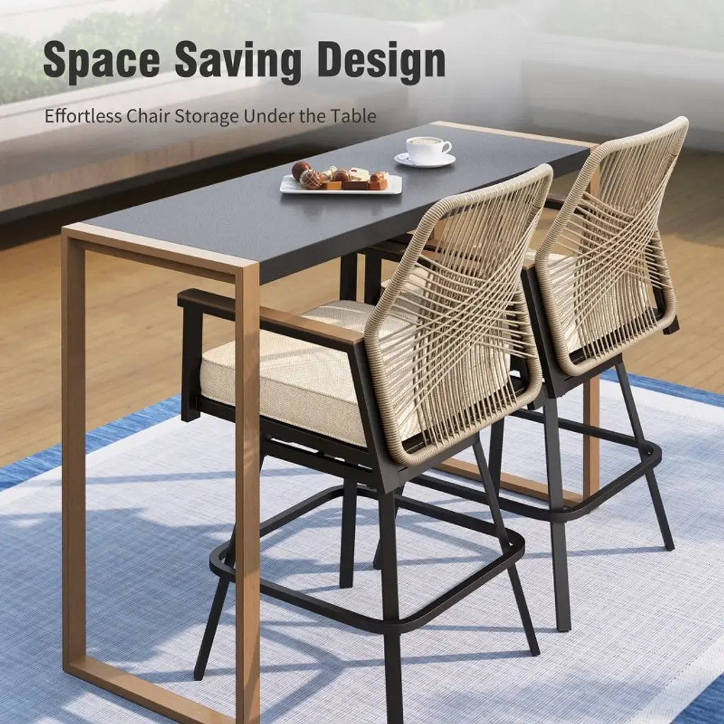 Enhance your outdoor dining experience with the Captiva Designs Patio Steel High Bar Table. With a large 55.0 x 26.8 inch table top and sturdy C-shaped cross bracket, this heavy duty metal table comfortably seats 4 people. Its smooth surface is easy to clean and the E-coating ensures long-lasting use. Perfect for all your outdoor gatherings.