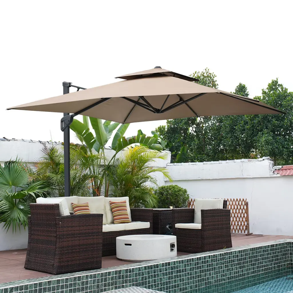 Casainc 11 Ft Square Cantilever Umbrella For Outdoor Patio, Beige