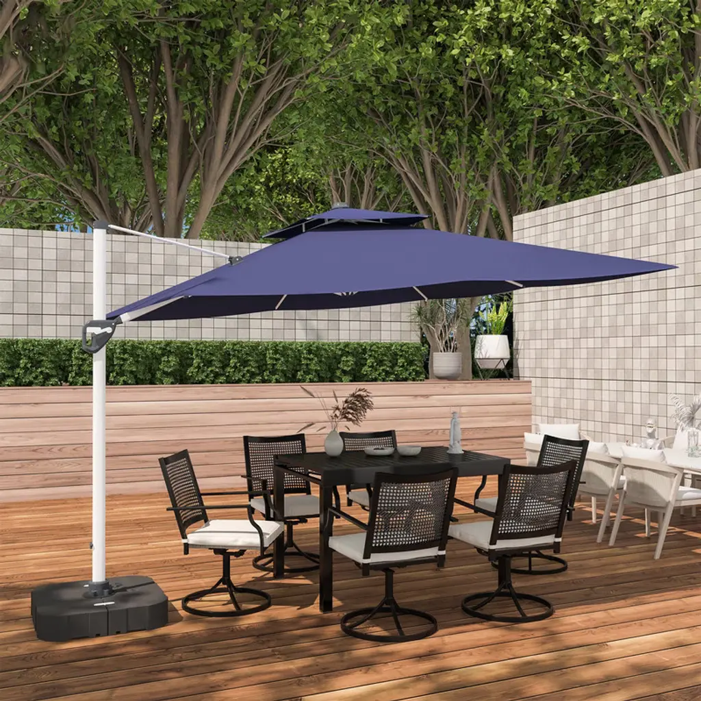 Casainc 11 Ft Square Double Top Patio Cantilever Umbrella, Navy Blue