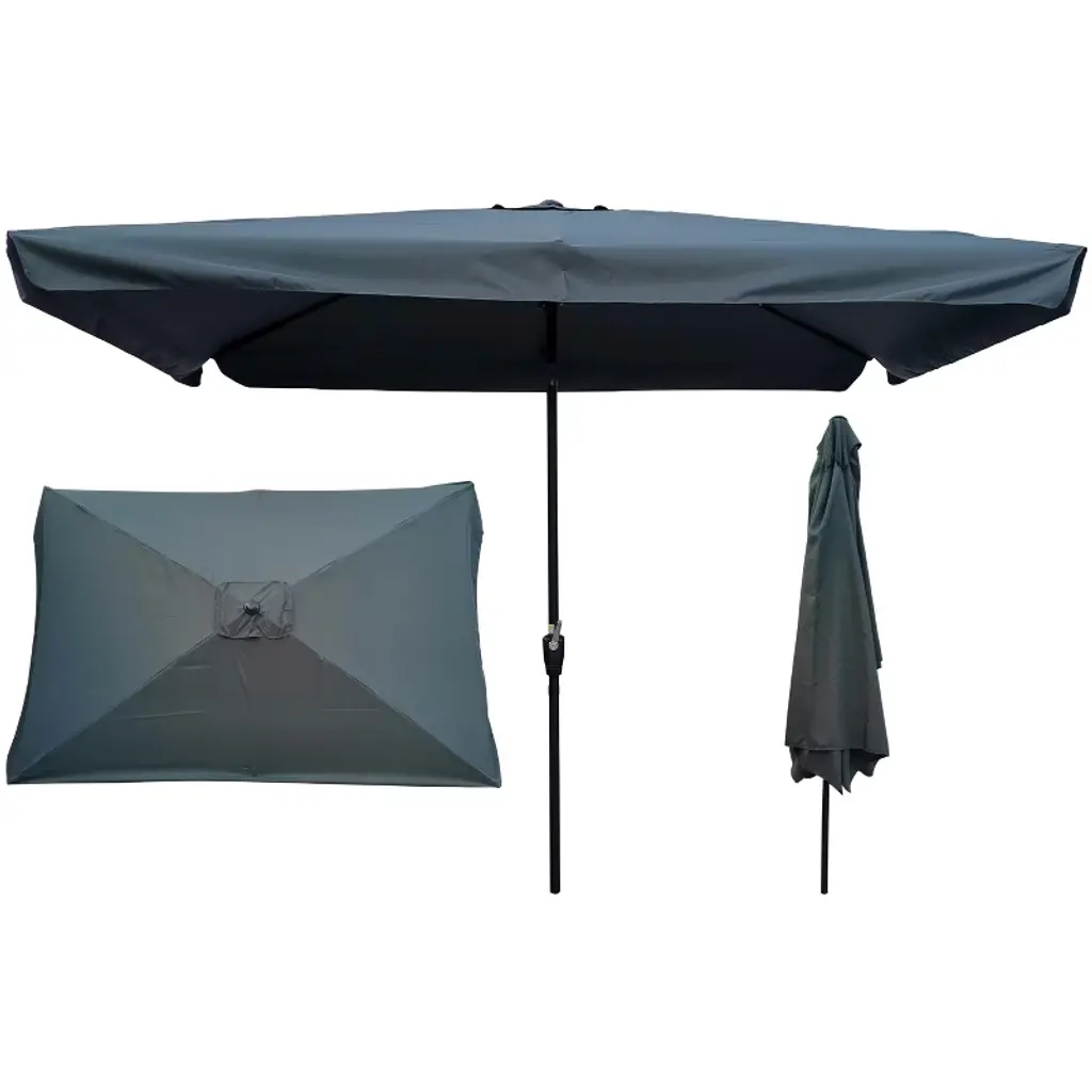 Featuring a large double-sided canopy, this umbrella provides excellent sun protection for hot summer days. Its powder-coated frame ensures resistance to rust and corrosion, offering long-lasting durability. The crank lift and push-button tilt system allow for effortless adjustment, while the UV- and wind-resistant polyester fabric makes it ideal for patios, gardens, beaches, and commercial spaces.
