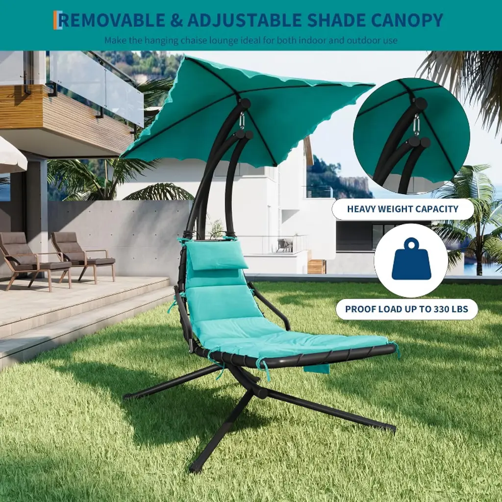 Chaise Lounger Swing Chair With Umbrella Canopy, Hanging Chaise Lounger Chair, Curved Outdoor Lounge Chairs For Patio Pool Garden Backyard