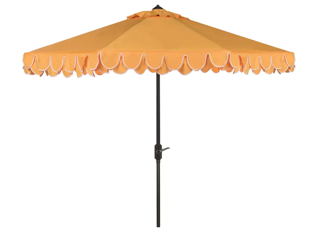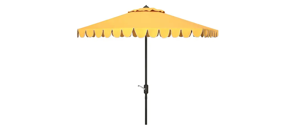 Offering a second home to jetsetters and cinema stars, a legendary beachside resort at Cannes inspired this elegant umbrella. Its petal valance finished in crisp yello and white, it recalls the inimitable red carpet glamour of the Cote d'Azure.