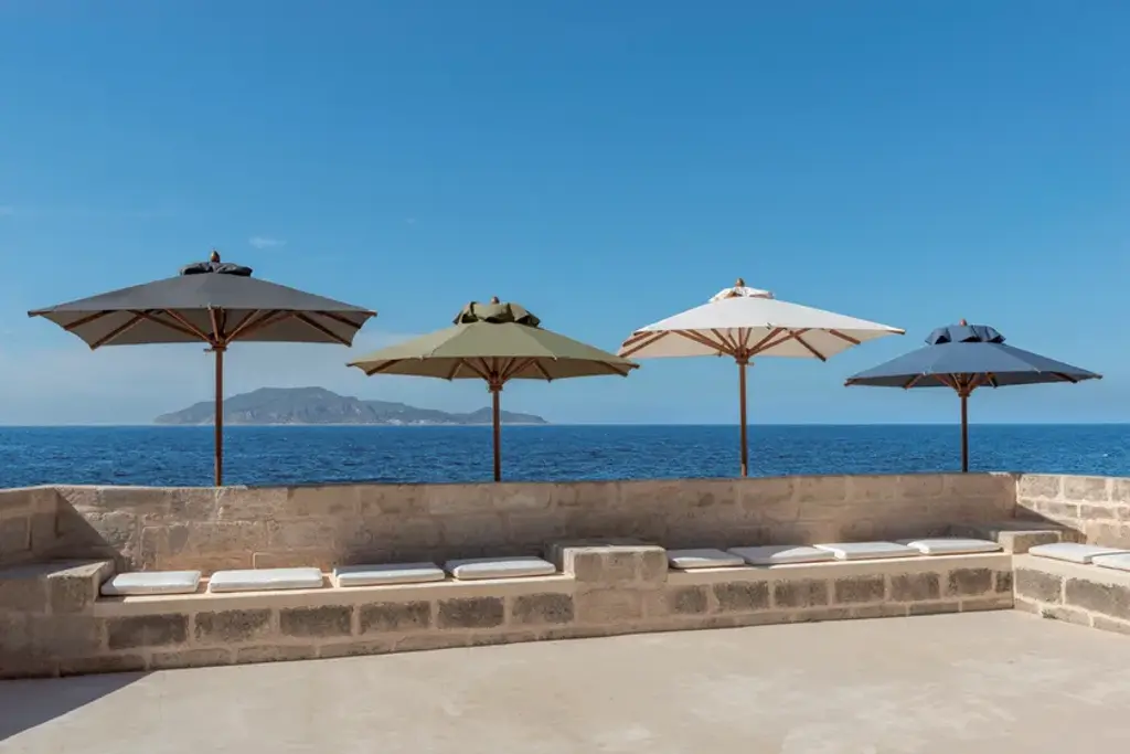 Rectangular parasol with a central pole and a pulley for opening and closing and acrylic canvas in different colours, without base.Available with bases of different types and in various colours inspired by nature, the Classic parasols are suited to infinite uses and combinations.