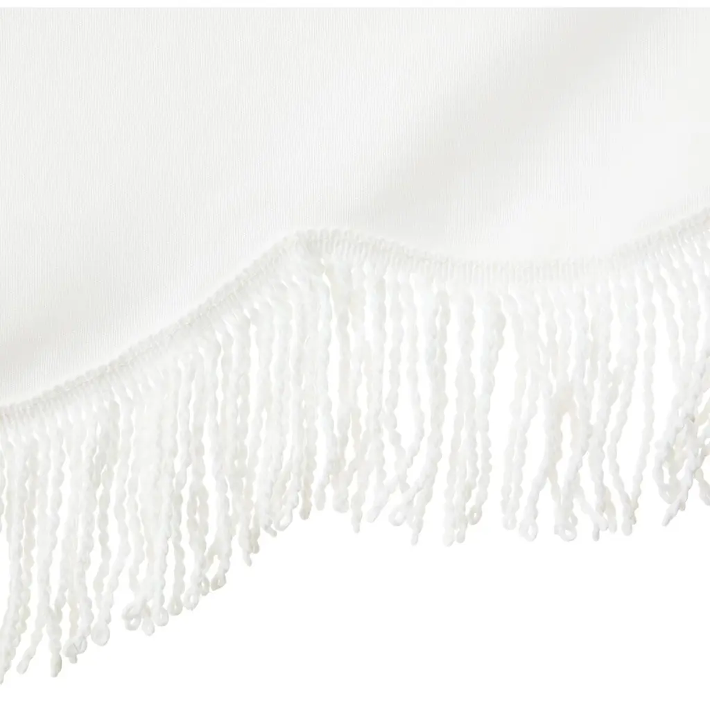 Designed by us and available only at One Kings Lane: Whether you're entertaining or just lounging outdoors, catch some shade in style with this patio umbrella. Its fringed canopy is crafted from durable Sunbrella acrylic to protect against the elements, while its frame is made using a combination of sturdy aluminum and zinc plated steel and features a tilt-and-crank function. An umbrella base is not included but is required for use.