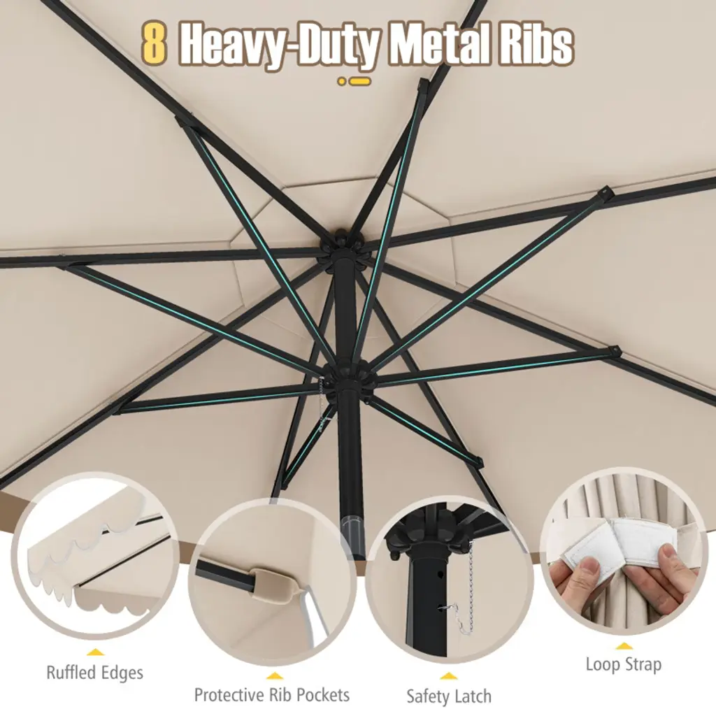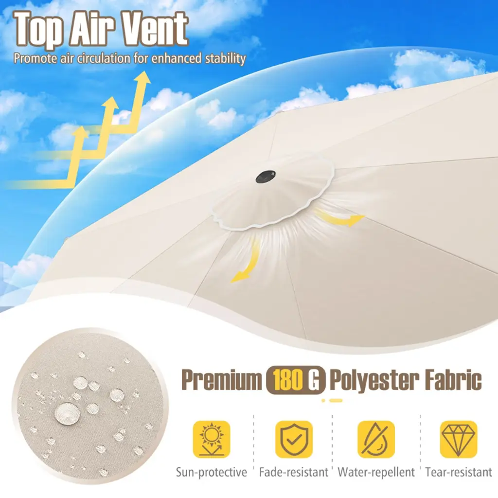 Costway 10 Ft Patio Umbrella With Crank Tilt Adjustment Ruffles Vented Top 8 Ribs Beige