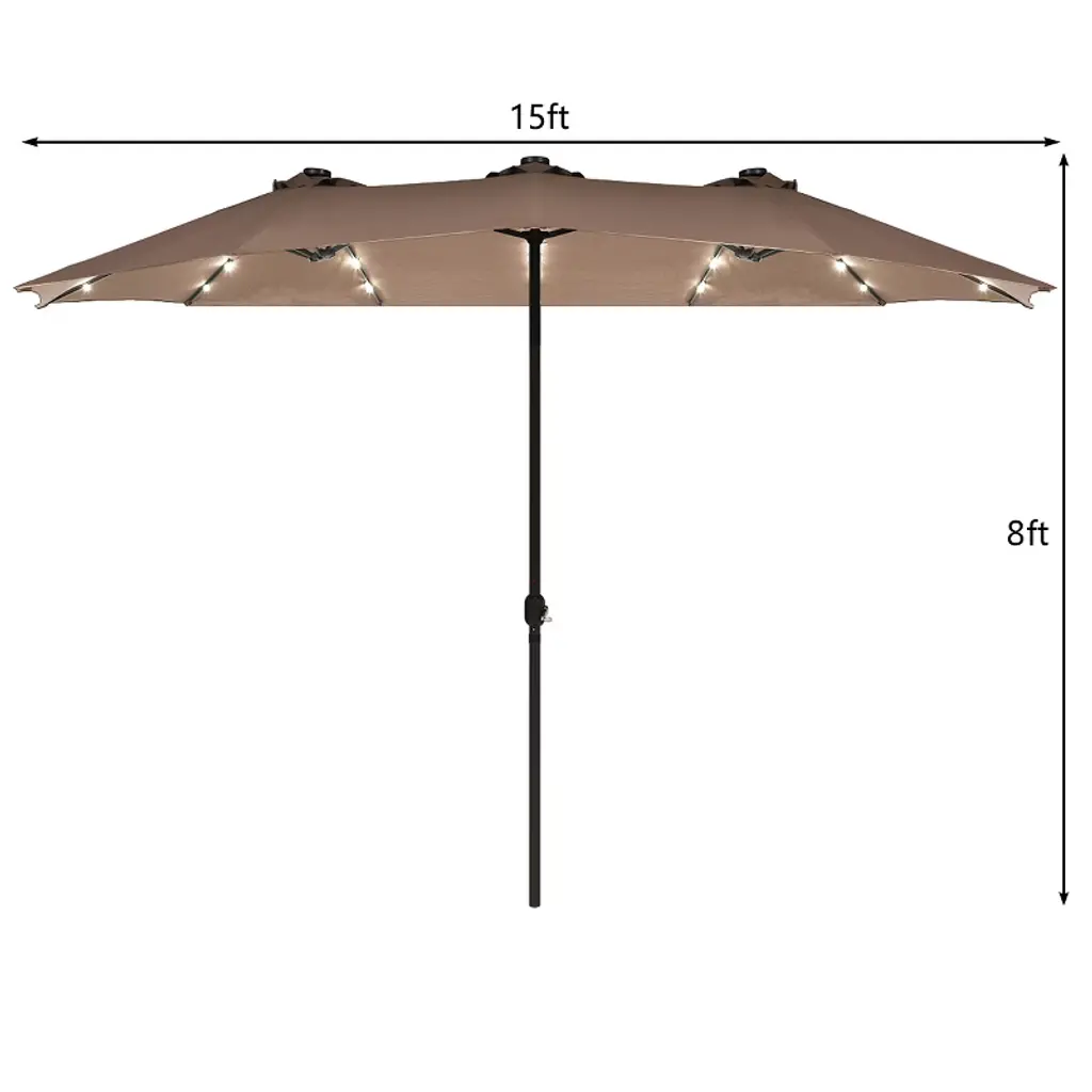 Costway 15ft Patio Double-sided Led Market Umbrella Crank Solar Powered Tan