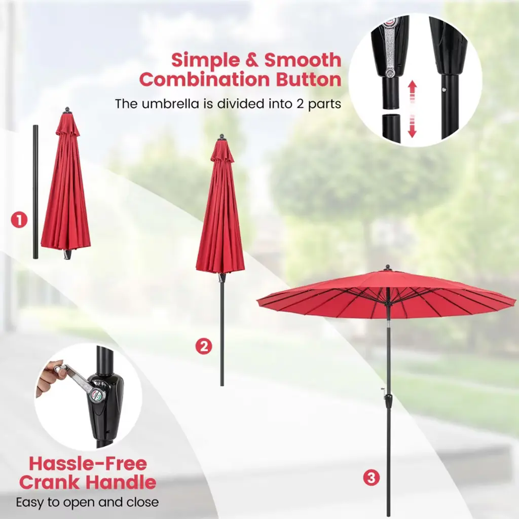 Costway 9 Ft Patio Round Market Umbrella With Push Button Tilt, Crank Handle, Vented Top Wine