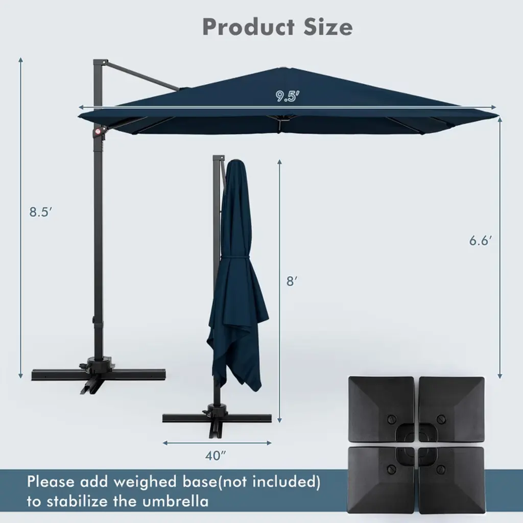 Costway Patio 9.5ft Square Cantilever Offset Hanging Umbrella 2-tier 360° Outdoor Navy