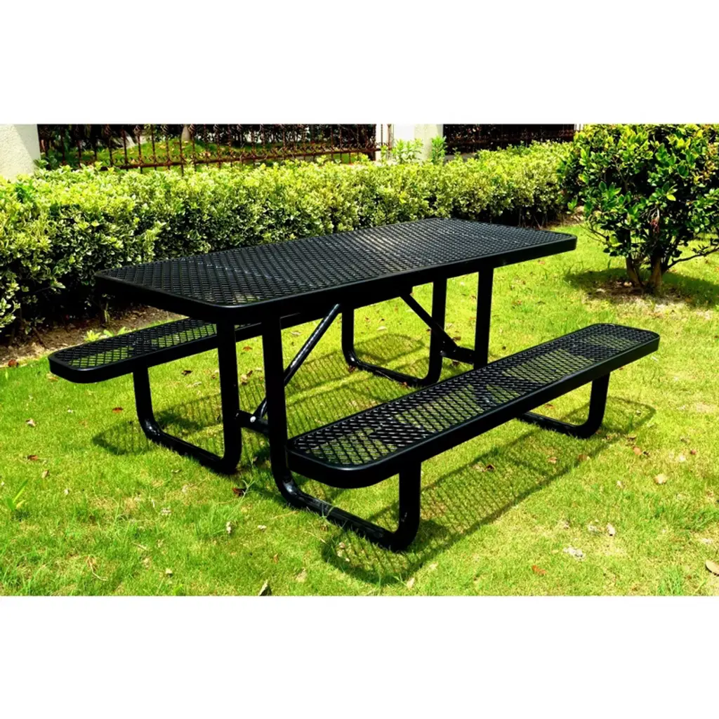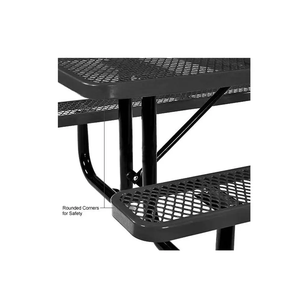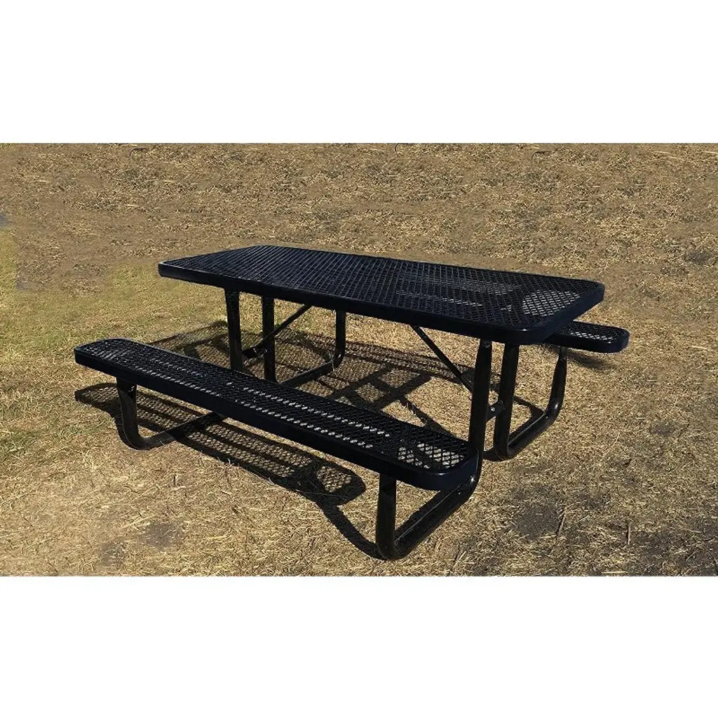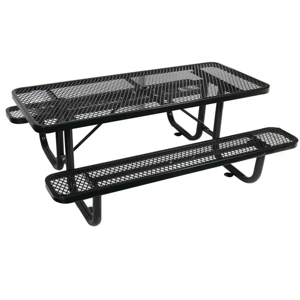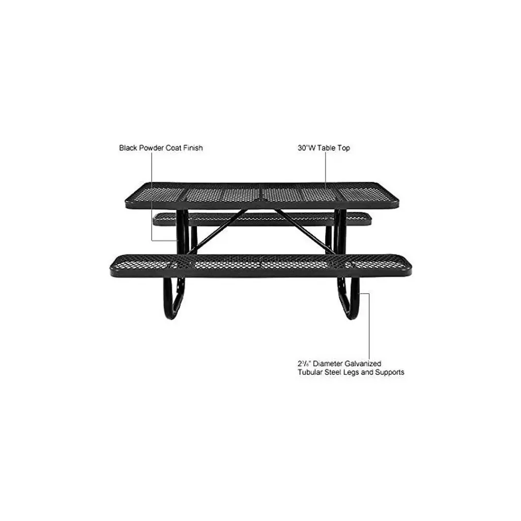 Cowlown Black Large 72" Expanded Metal Picnic Table, Sturdy Frame, Ample Seating, Umbrella Hole