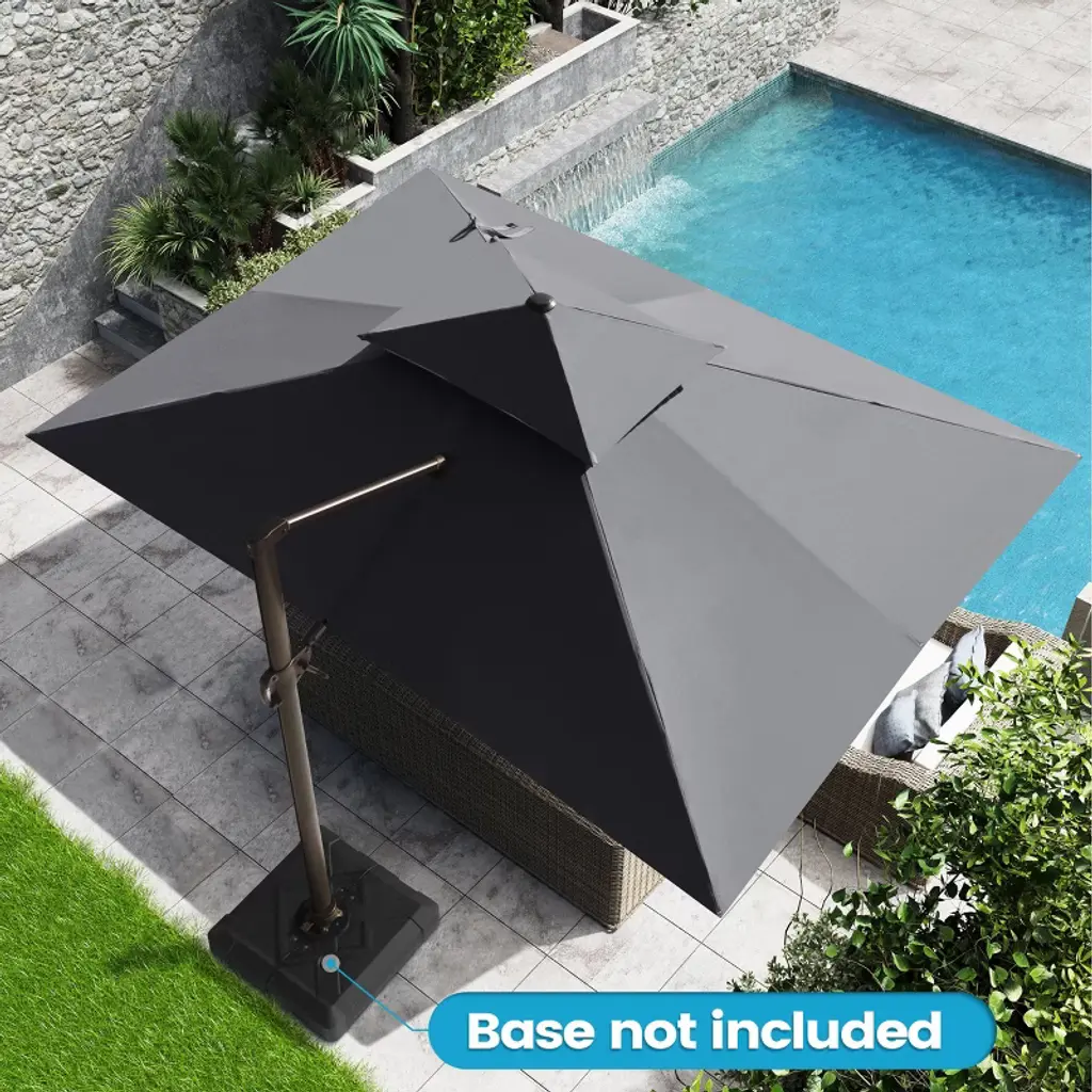 Crestlive Products 10'x 12.5' Patio Cantilever Umbrella Uv30+ Double Top High-strength Aluminum Pole With 360°rotation 5 Heights Adjustable Gray