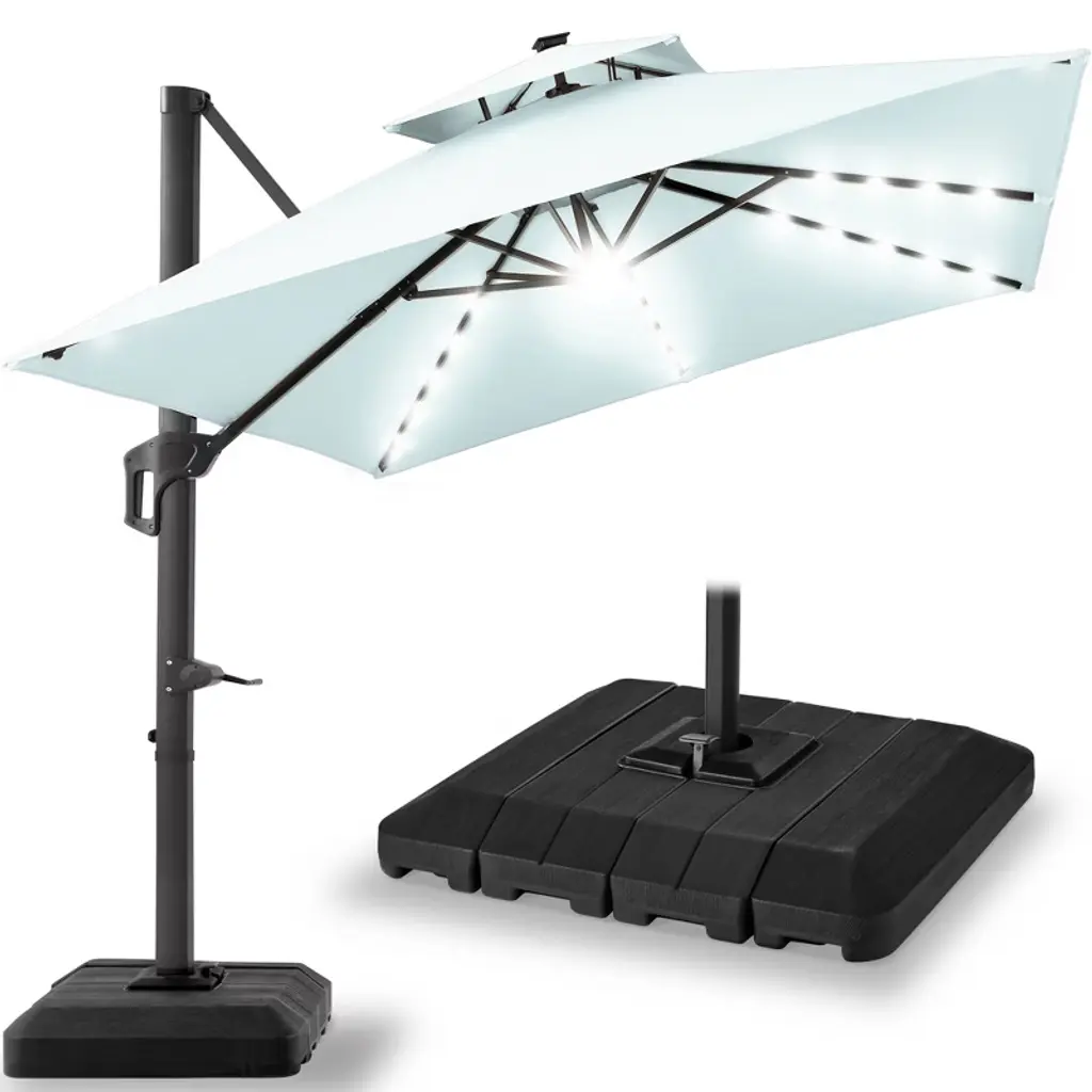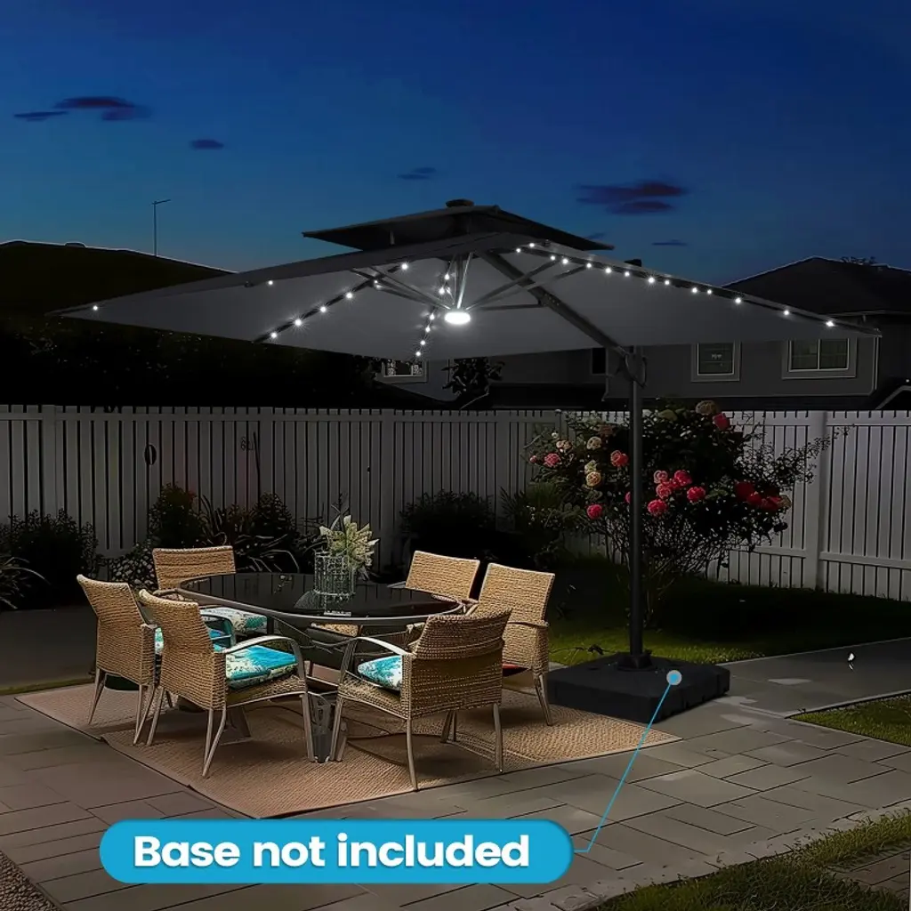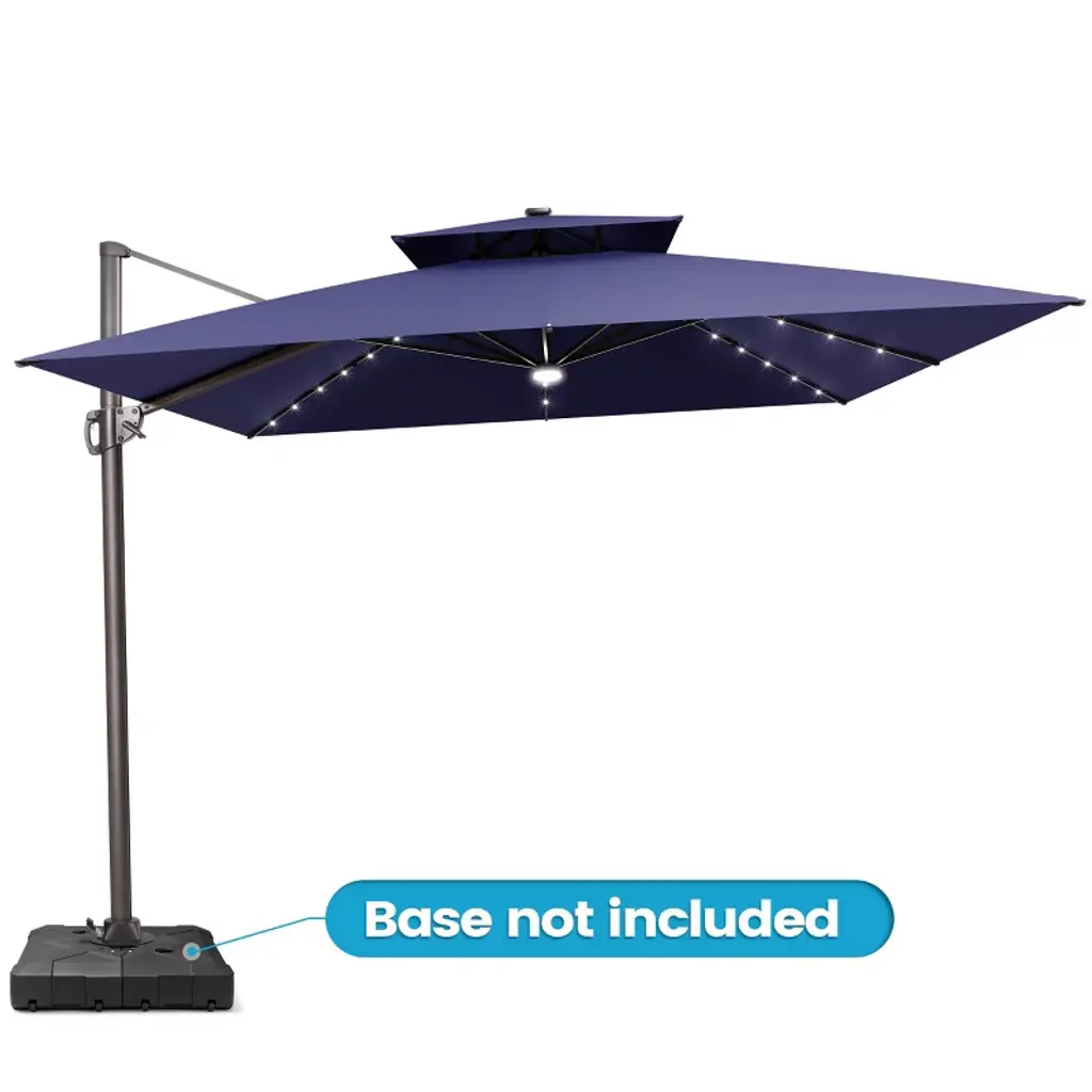 Crestlive Products 11ft Patio Double Top Cantilever Umbrella With Light Outdoor 360° Rotation 6 Heights Adjustable Offset Umbrella