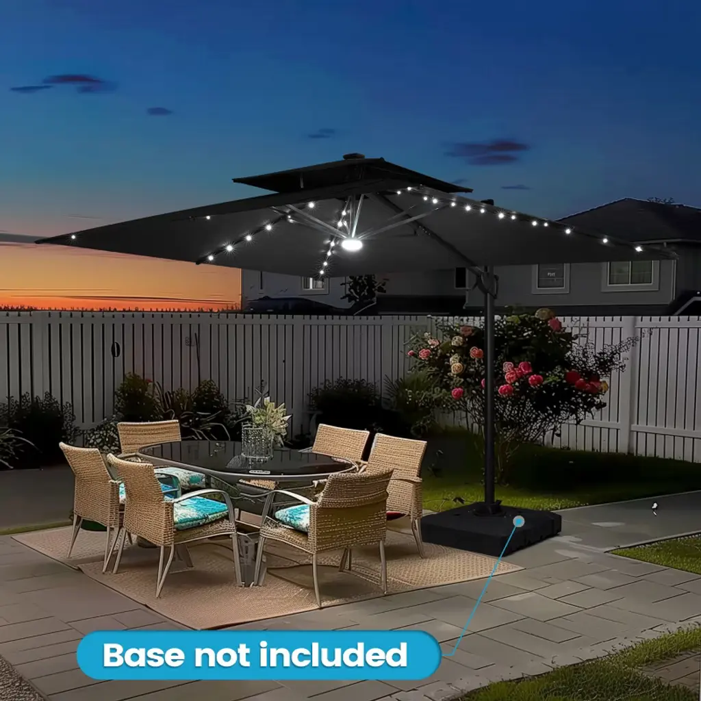 Crestlive Products 11ft Patio Double Top Cantilever Umbrella With Light Outdoor 360° Rotation 6 Heights Adjustable Offset Umbrella