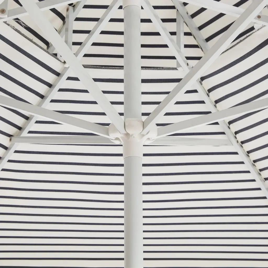 Designed by us and available only at One Kings Lane: Whether you're entertaining or just lounging outdoors, catch some shade in style with this two-tier patio umbrella. Its canopy is crafted from durable Sunbrella acrylic to protect against the elements, while its frame is crafted from a combination of sturdy aluminum and zinc plated steel with a crank open, non-tilt function. An umbrella base is not included but is required for use.