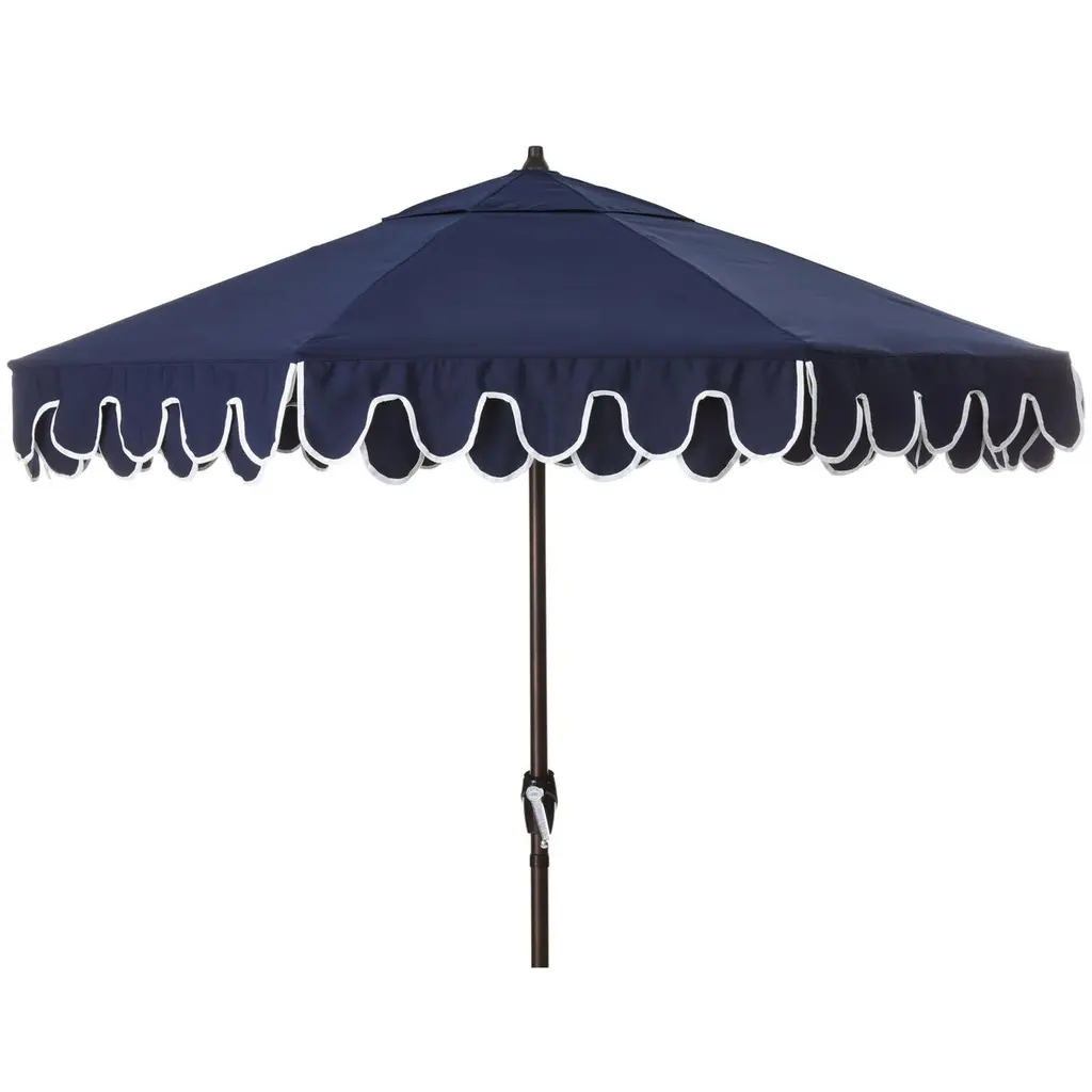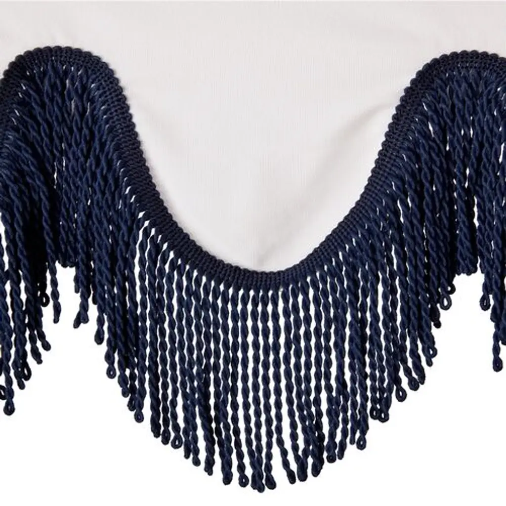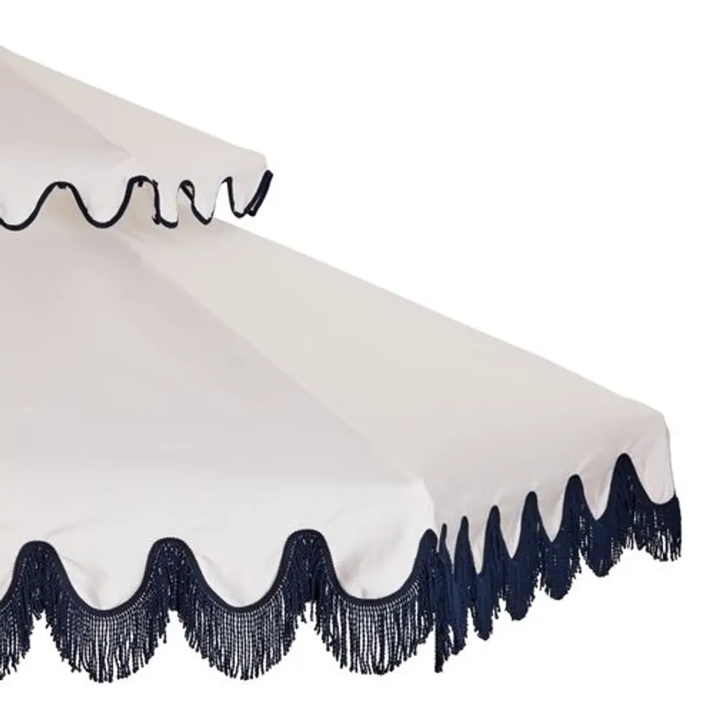 Daiana Two-tier Fringe Patio Umbrella, White/navy Fringe
