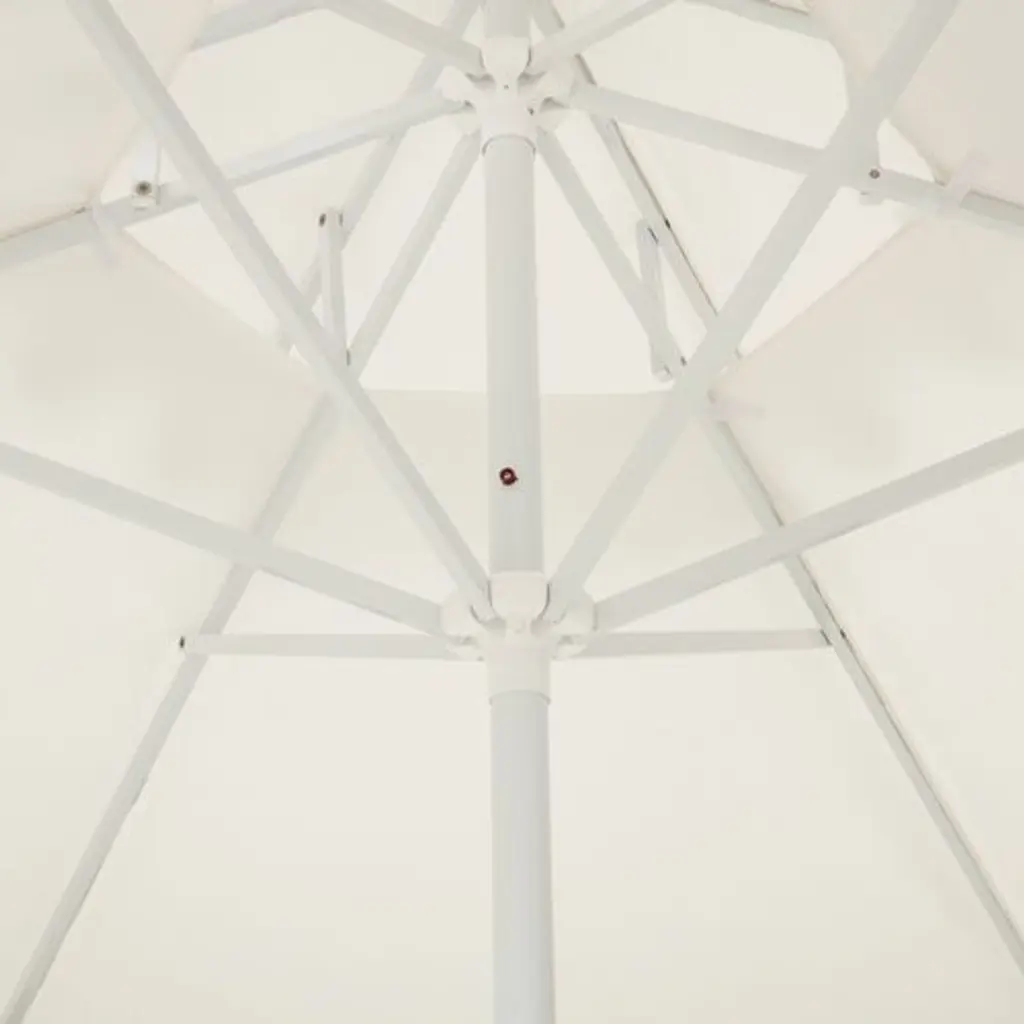 Designed by us and available only at One Kings Lane: Whether you're entertaining or just lounging outdoors, catch some shade in style with this two-tier patio umbrella. Its canopy is crafted from durable Sunbrella acrylic to protect against the elements, while its frame is crafted from a combination of sturdy aluminum and stainless steel with a push-open pin stop. An umbrella base is not included but is required for use.