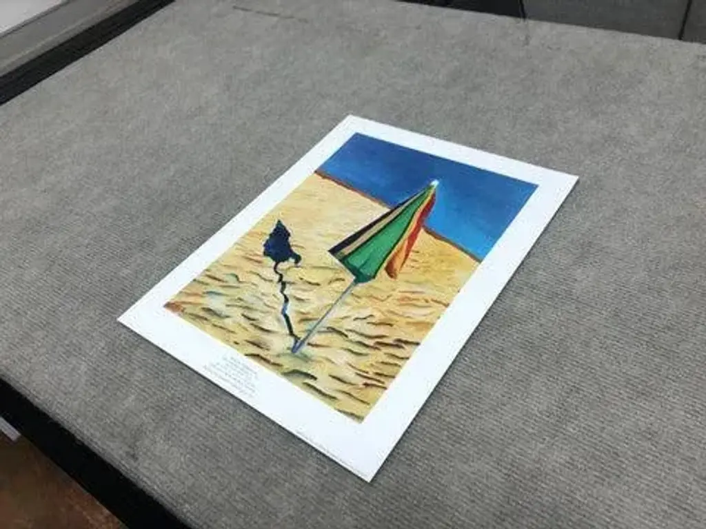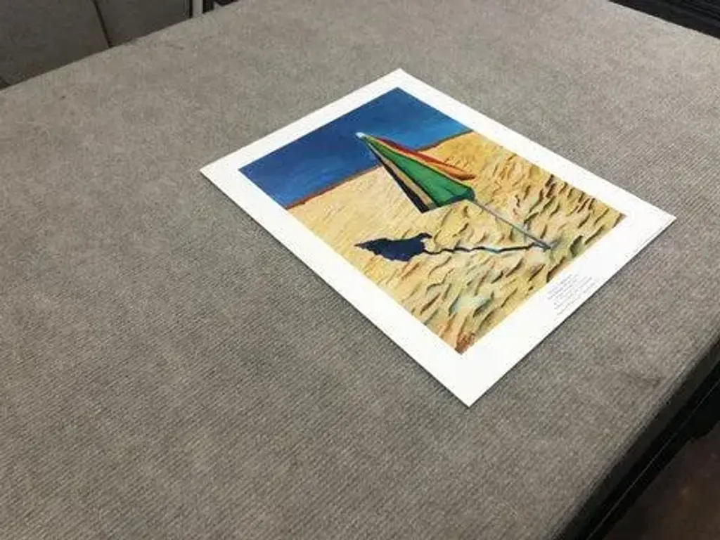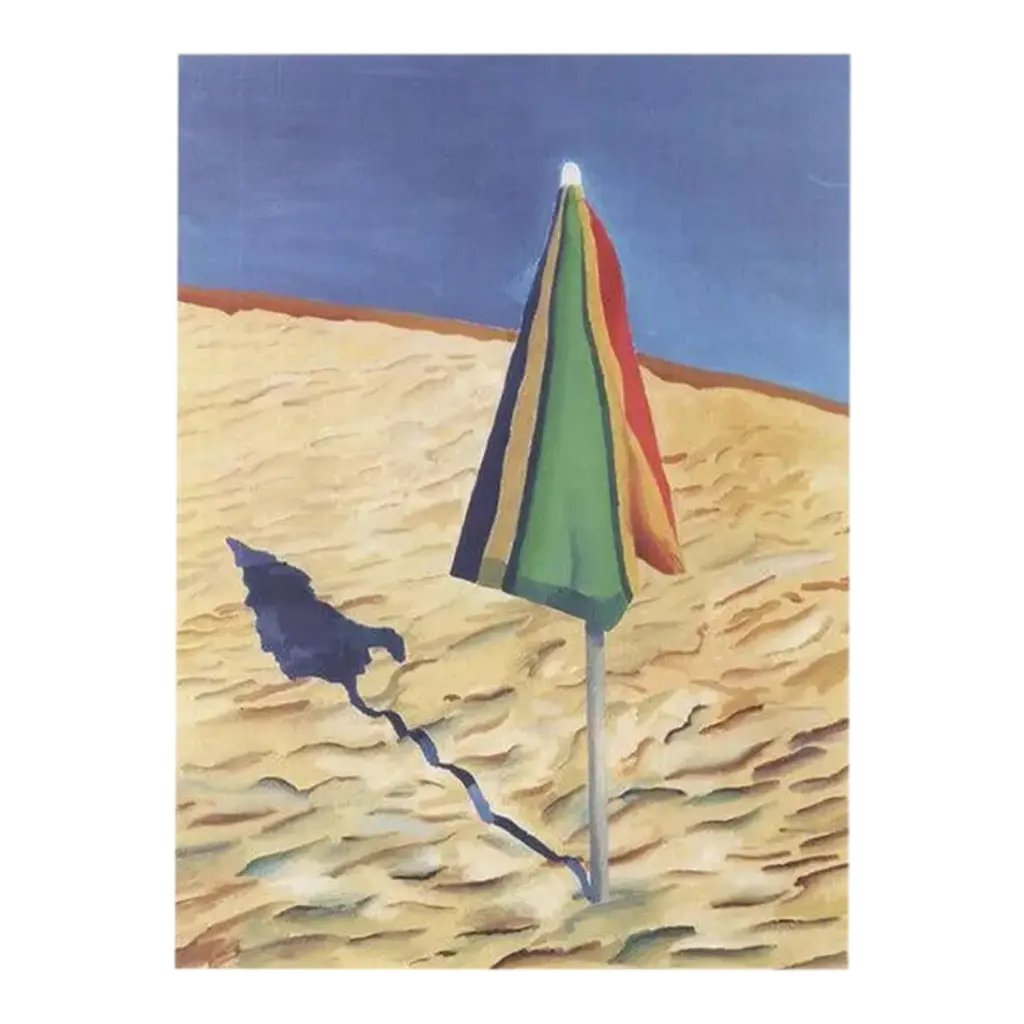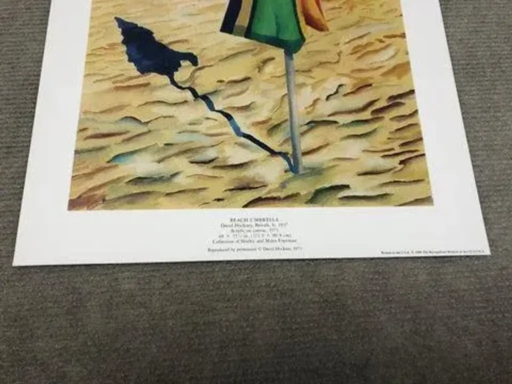 Artist: David Hockney Title: Beach Umbrella Year: 1988 Signed: No Medium: Offset Lithograph Paper Size: 14 x 11 inches ( 35.56 x 27.94 cm ) Image Size: 11.5 x 8.75 inches ( 29.21 x 22.225 cm ) Edition Size: Unknown Framed: No Condition: A: Mint Additional Details: First edition poster published by the Metropolitan Museum of Art, copyright David Hockney.