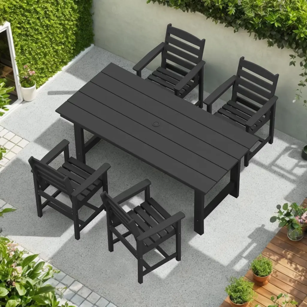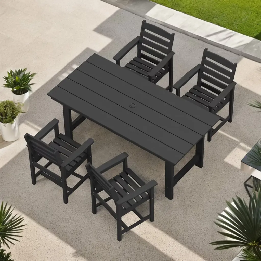 Decksplore 5 Piece Hdpe Patio Outdoor Furniture Set With Umbrella Hole