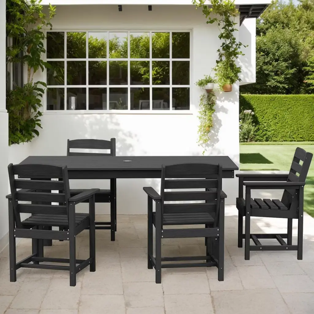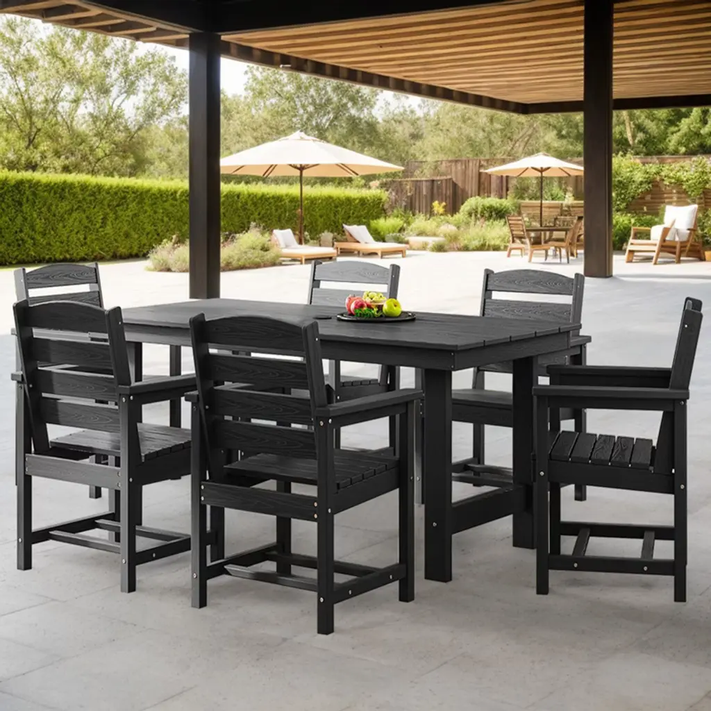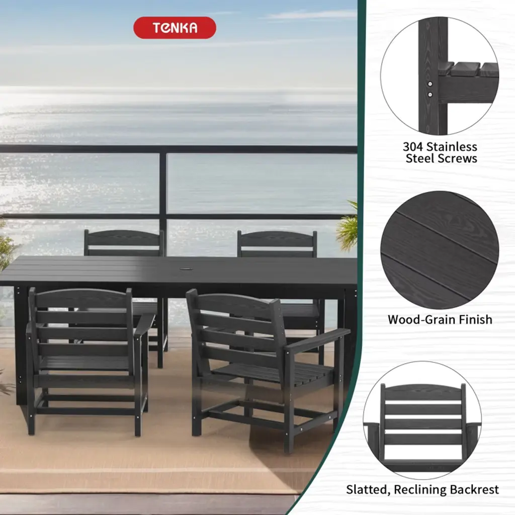 Decksplore 7 Pcs Hdpe Patio Outdoor Dinner Set Dining Table And Chairs With Umbrella Hole