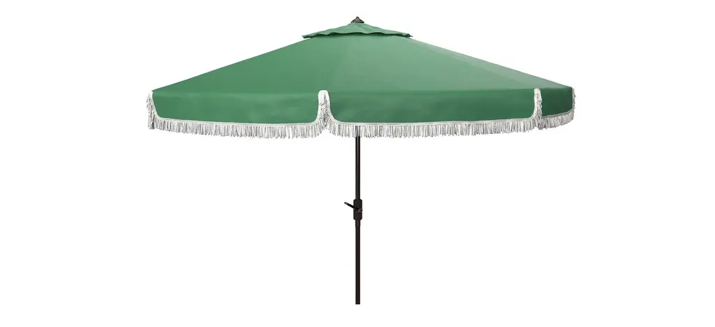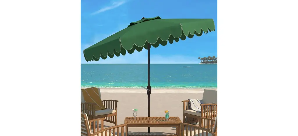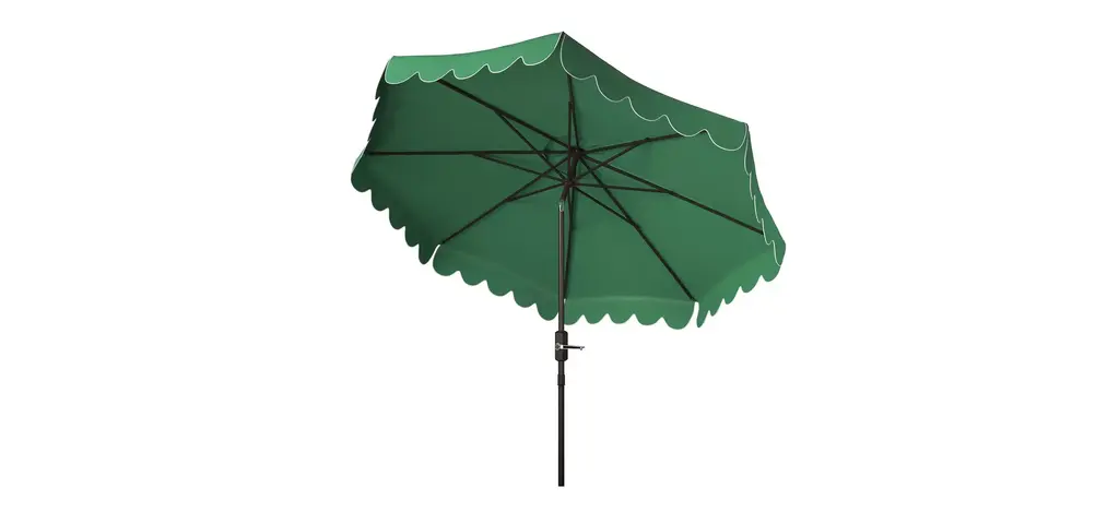 The signature coloration of Santorini's lush legendary resort inspired this Doreen Octagon Patio Umbrella. Its sophisticated hue features a single scallop trim to create an outdoor retreat for the modern tastemaker.
